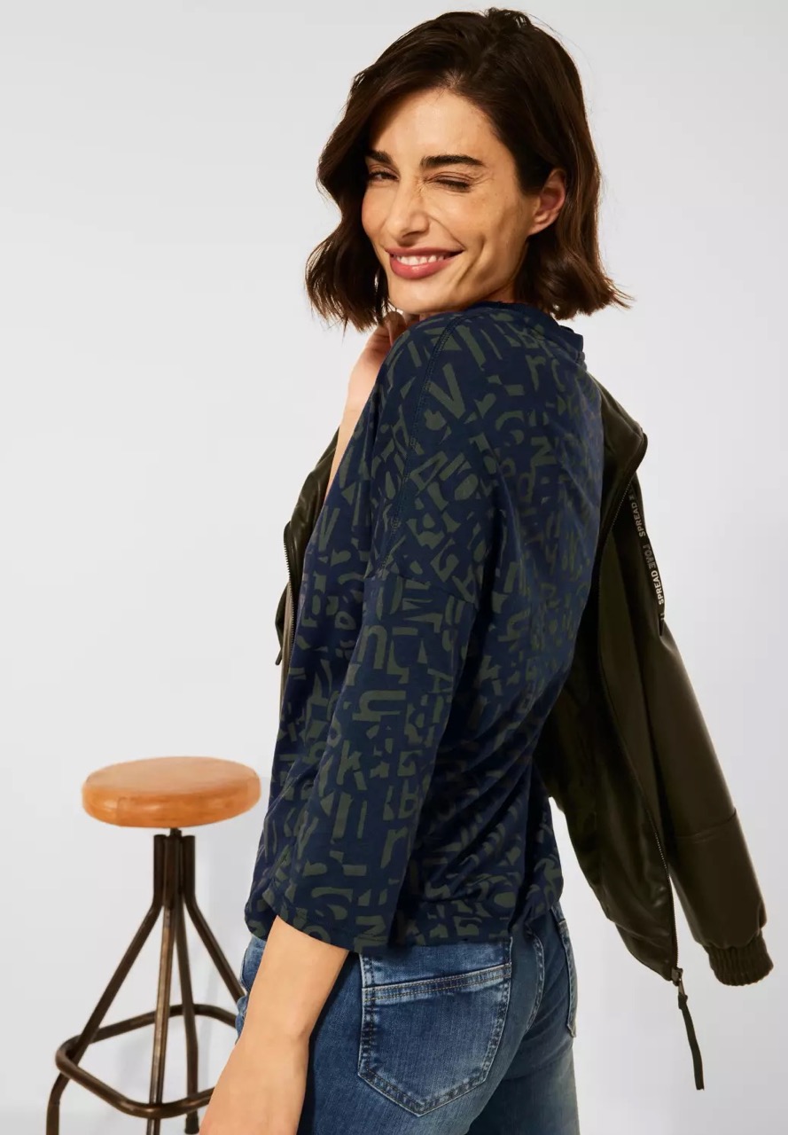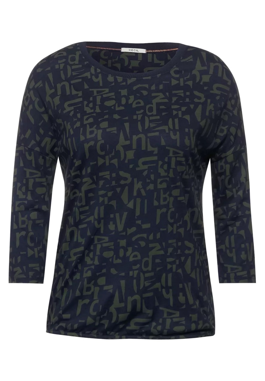 Cecil Tops en Shirts B317467 20128 4063041298306 Shirt van Cecil in een letter dessin met driekwart mouwen en een ronde hals. Materiaal: Katoen 50%| modal 50% |