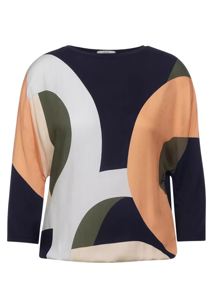 Cecil Tops en Shirts B317456 4063041291581 Shirt van Cecil in een all-over dessin met driekwart mouwen, boothals en een elastische zoom. Materiaal: Viscose 100%. Achterkant: Viscose 95%| elastan 5% |