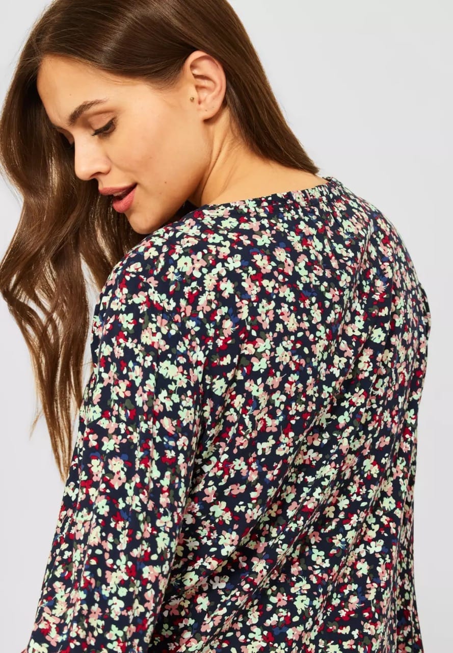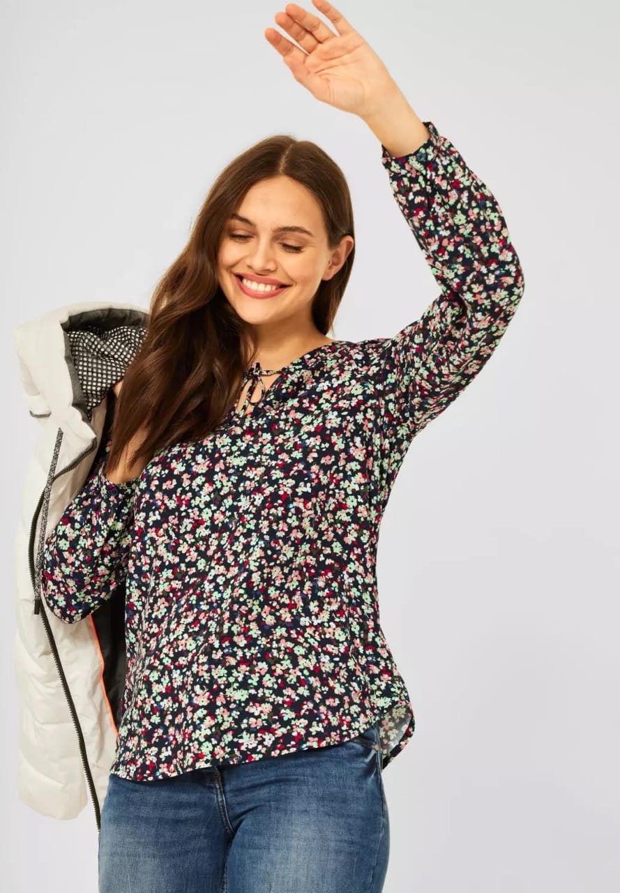 Cecil Blouses B342998 4063041225210 Blouse van Cecil in een bloemen dessin met lange mouwen, V-hals met tuniekbandje en een afgeronde zoom. Materiaal: Viscose 100% |