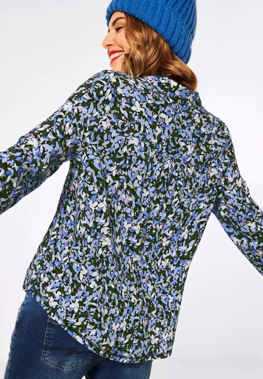 Street One Blouses A343085 4063052811396 Blouse van Street One in een minimalistische bloemen dessin met lange mouwen, kraag, knoopsluiting en een afgeronde onderzijde. Materiaal: EcoVero Viscose 100% |