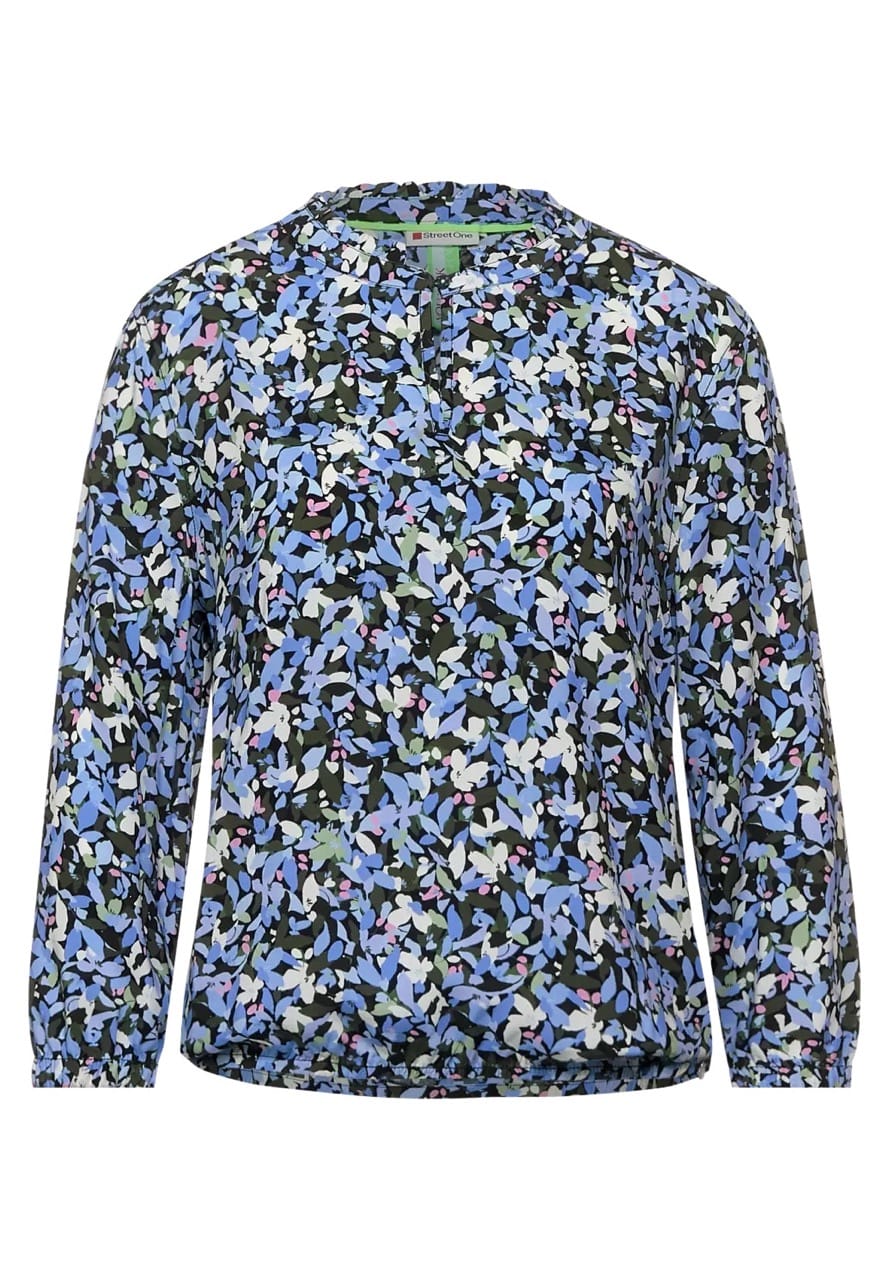 Street One Blouses A343086 4063052812133 Blouson van Street One in een minimalistische bloemen dessin met lange mouwen, ronde hals, keyhole met knoopsluiting aan de voorzijde en een elastische onderzijde. Materiaal: Viscose 100% |