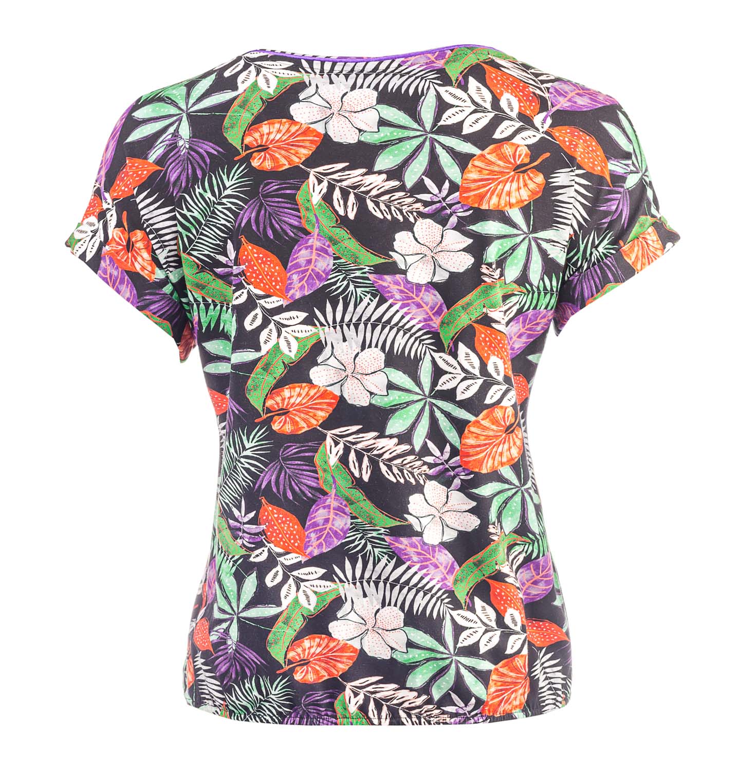 Ned Tops en Shirts CF044-04 NOXP 8720037246722 Shirt van NED in een all-over dessin met een V-hals, korte aangeknipte mouwen voorzien van omslag en een elastische onderzijde. |