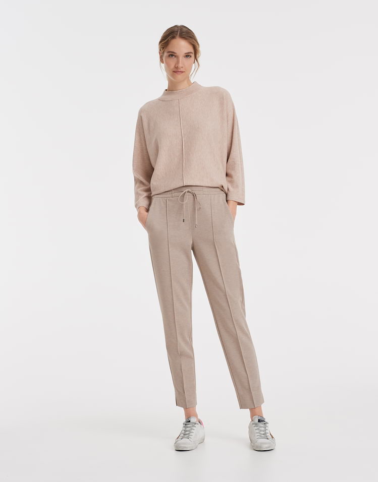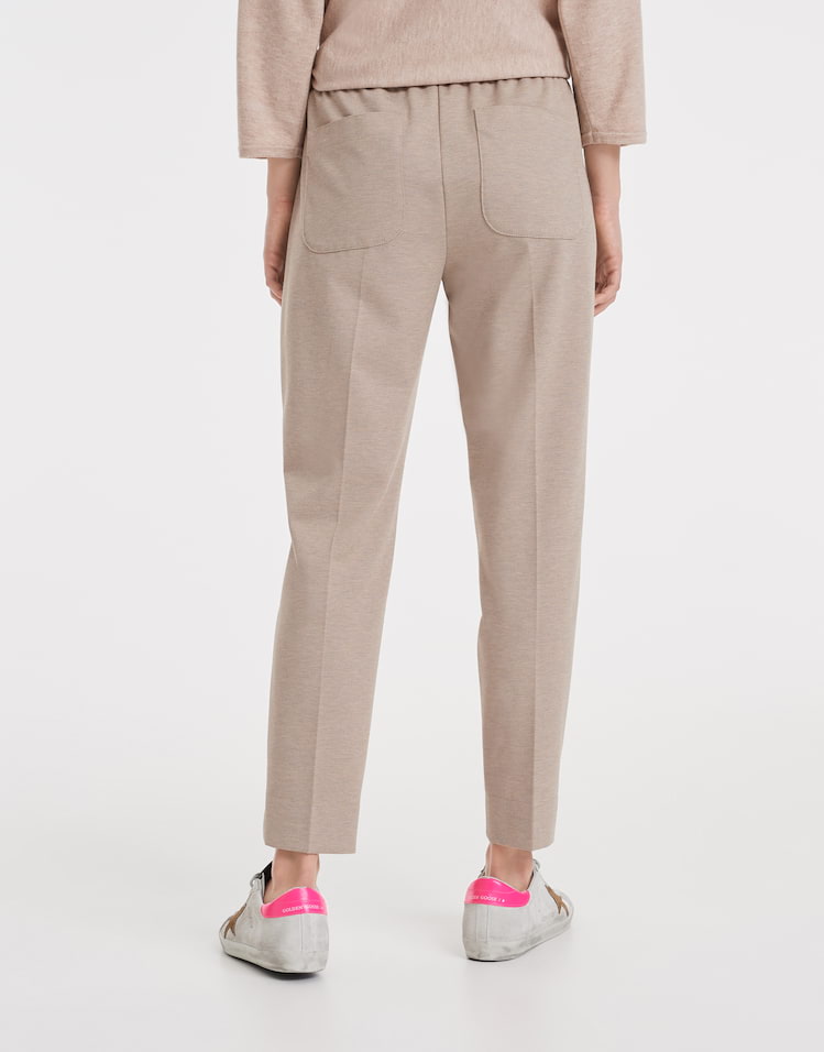 Opus Broeken 243745476100 4251892218189 GemĂȘleerde broek van Opus met een elastische tailleband voorzien van trekkoord en twee grote opgestikte zakken aan de achterzijde. Materiaal: Polyester 74%| katoen 17%| viscose 7%| elastan 2% |