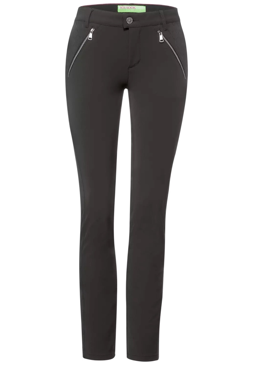 Street One Broeken A374832 4063052790530 Broek van Street One in een slim-fit met twee ritszakken aan de voorzijde, twee opgestikte zakken aan de achterzijde, smalle pijpen en een knoop- en ritssluiting. Materiaal: Polyamide 88%| elastan 12% |