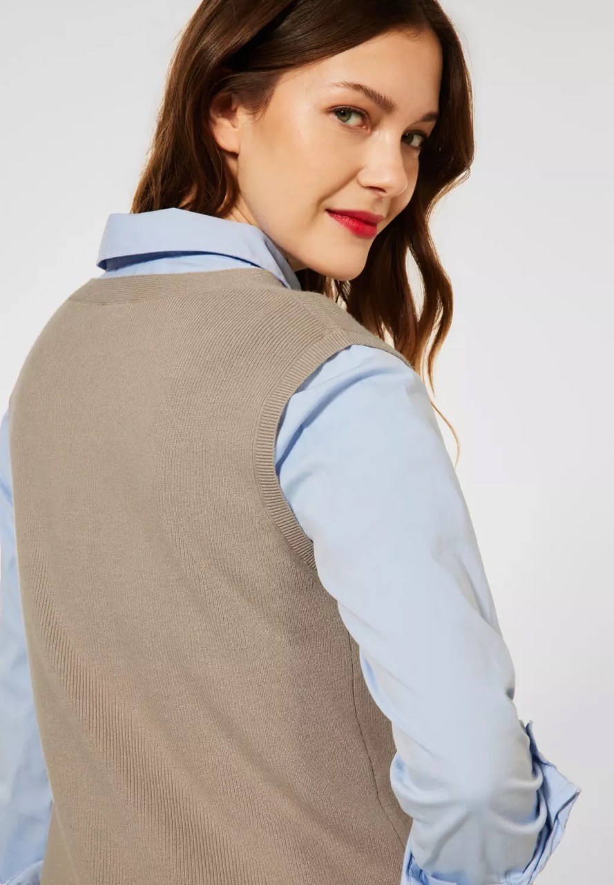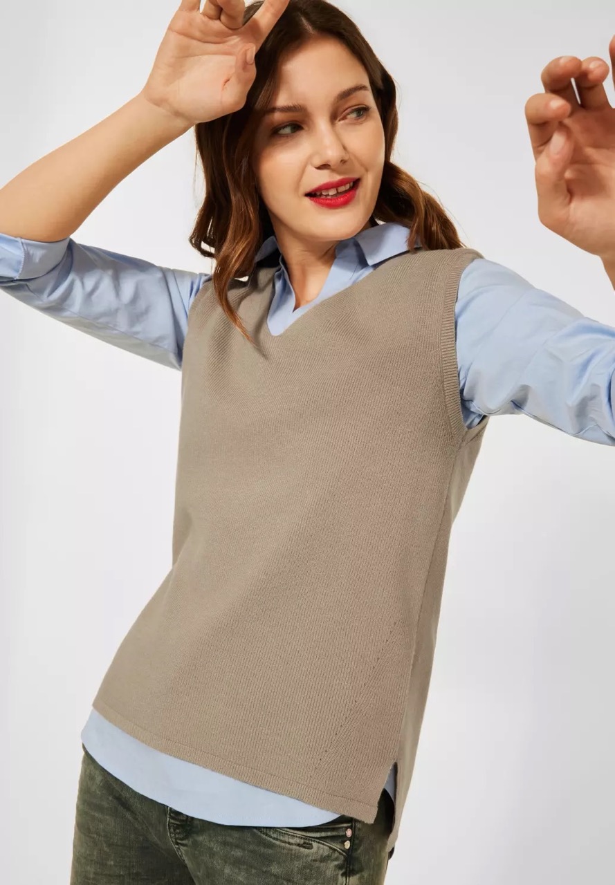 Street One Truien A301811 4063052767402 Gebreide mouwloos shirt van Street One met een sportieve V-hals. Materiaal: Viscose 50%| nylon 25%| polyester 25% |