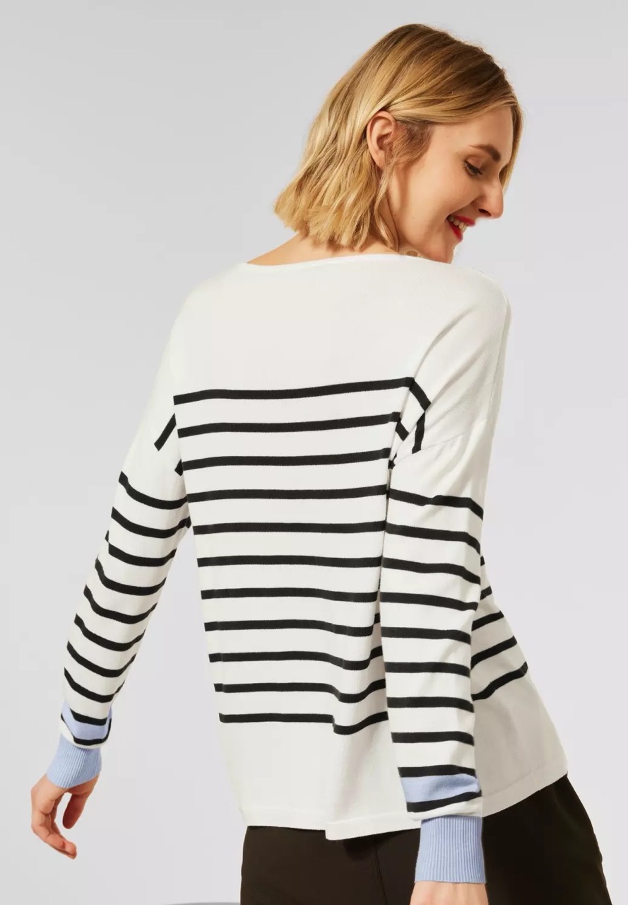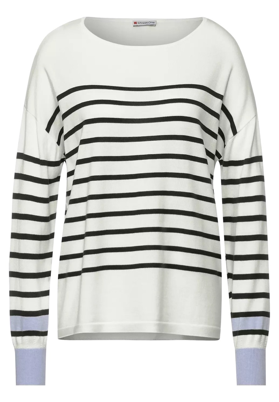 Street One Truien en Vesten A301827 4063052809416 Oversized gebreide pullover van Street One in een strepen dessin met lange mouwen, boothals, verlaagde schoudernaden en contrasterende ribgebreide boorden. Materiaal: Viscose 60%| katoen 40% |
