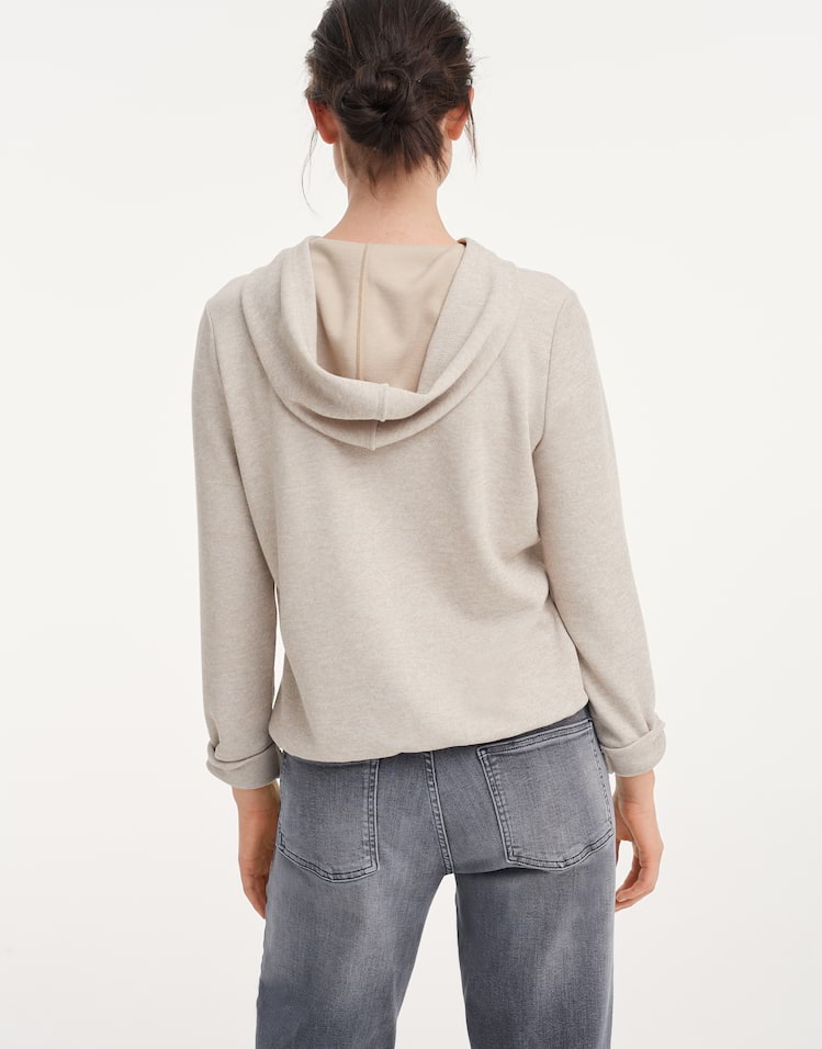 Opus Tops en Shirts 248649013 2104 4251238996375 Trui van Opus met lange mouwen, capuchon, diagonale zijnaad en ribgebreide boorden. Materiaal: Polyester 74%| viscose 23%| elastan 3% |