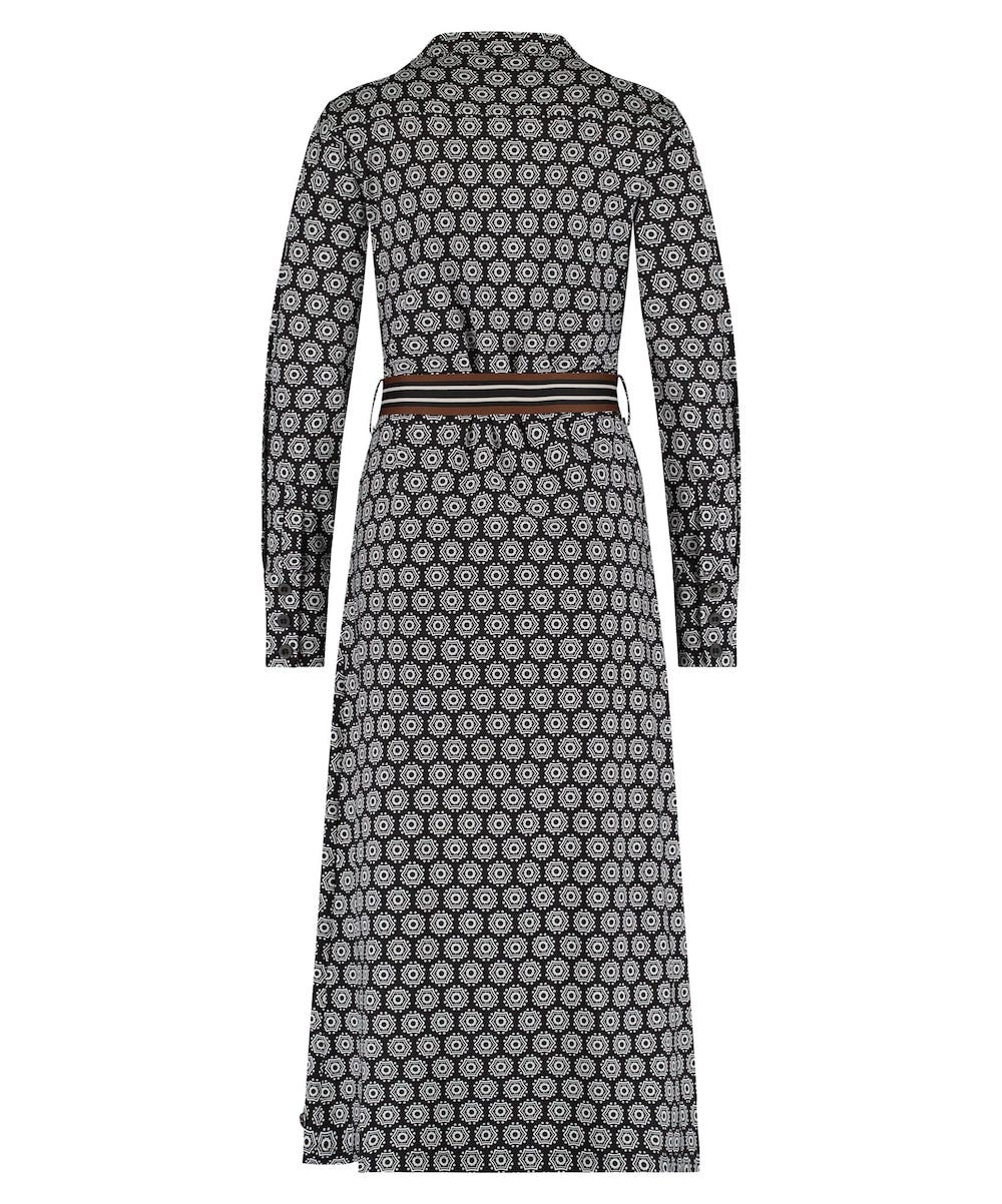 Lady day Jurken en Rokken M36.383.0301 DANTY 8720696603713 Jurk van Lady Day in travel kwaliteit met een all-over dessin, lange mouwen, brede manchetten, doorlopende knoopsluiting, kraag, V-hals en strikceintuur in de taille.. Materiaal: Polyamide 80%| elastan 20% |