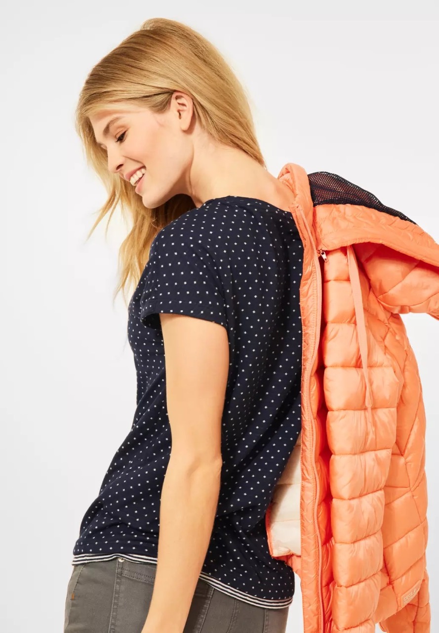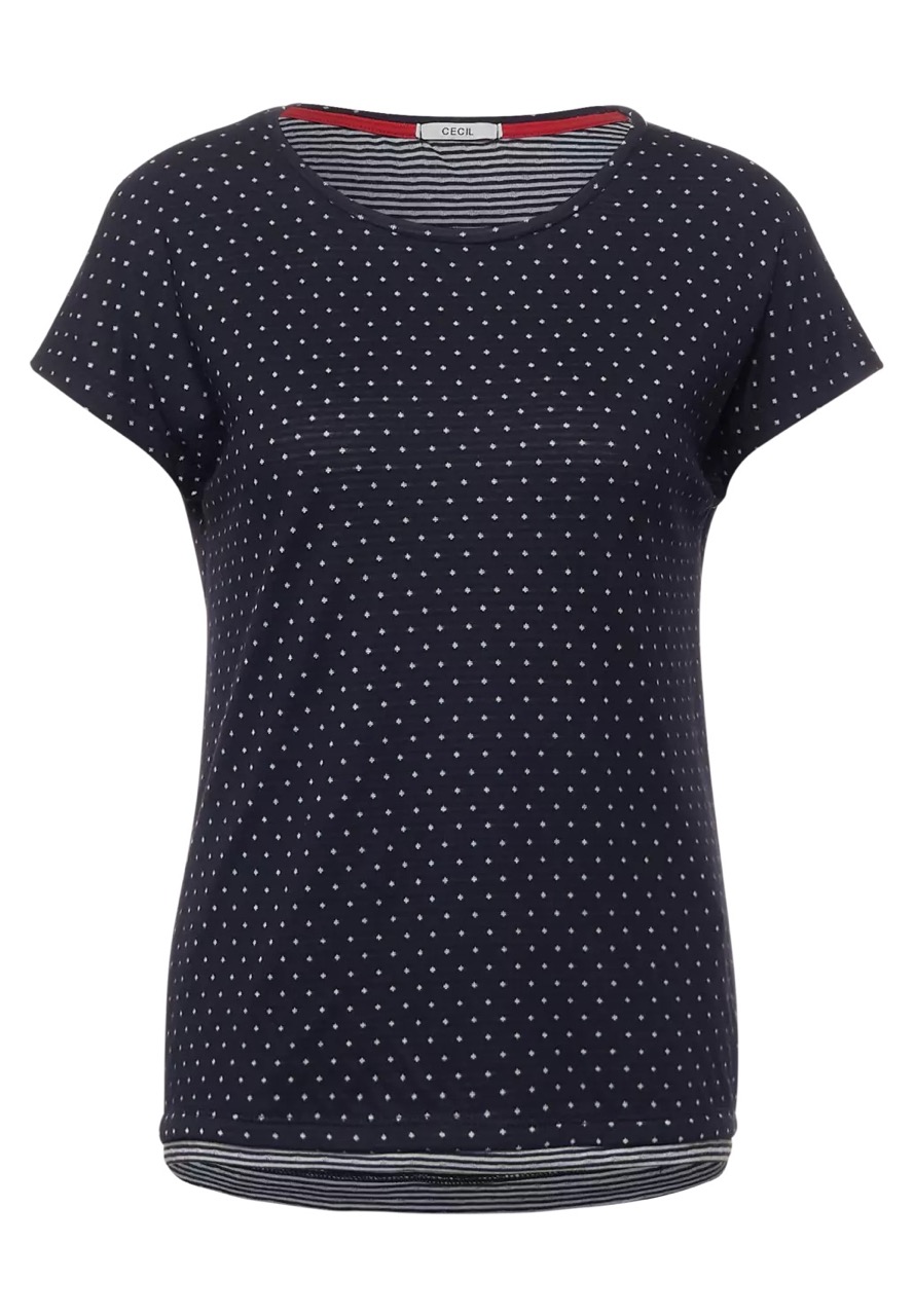Cecil Tops en Shirts B317627 4063041378602 T-shirt van Cecil in een all-over dessin met korte aangeknipte mouwen en een ronde hals. Materiaal: Katoen 37%| modal 37%| polyester 26% |
