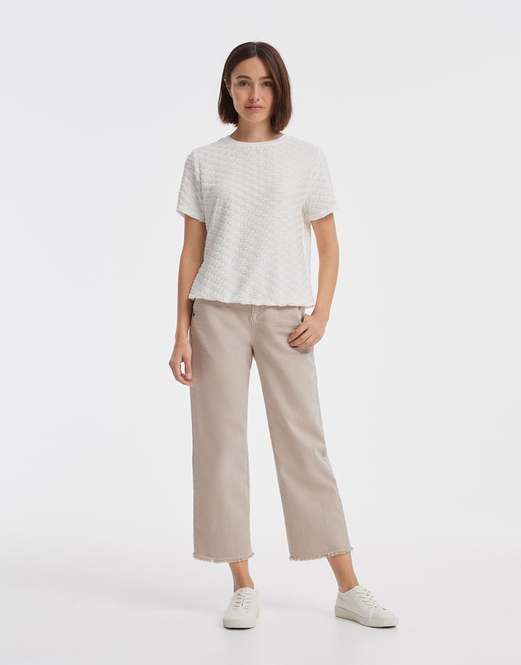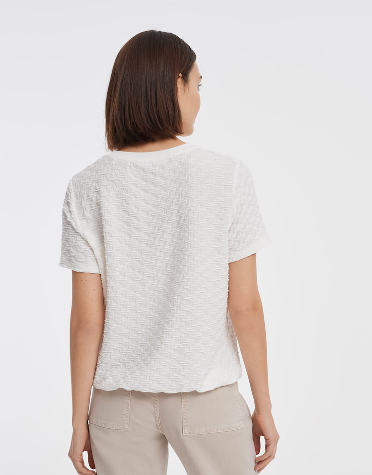 Opus Tops en Shirts 10042910445120 4251892230884 T-shirt van Opus in een structuur dessin met korte mouwen, ronde hals en een elastische zoom. Materiaal: Viscose 55%| polyester 42%| elastan 3% |