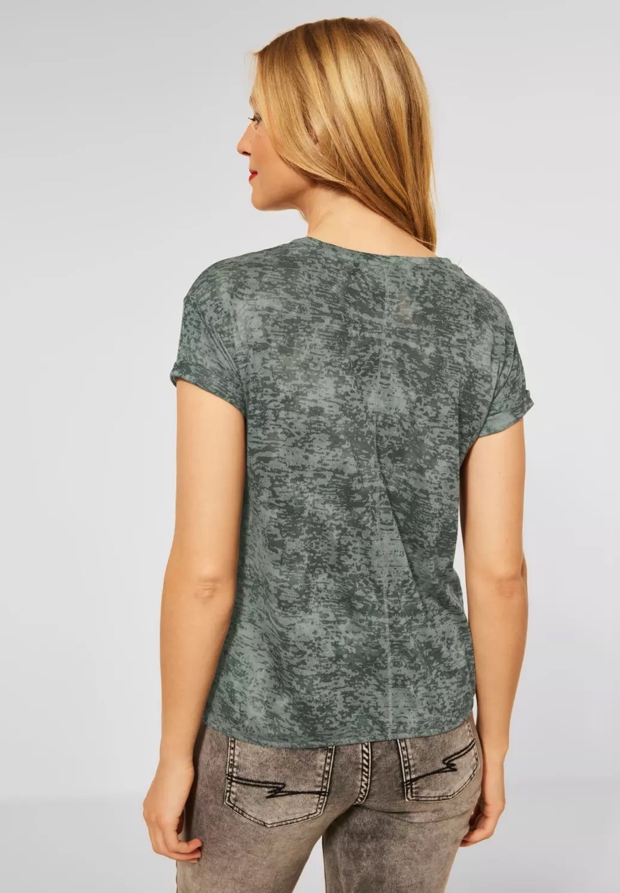 Street One Tops en Shirts A317591 4063052890551 T-shirt van Street One met een print aan de voorzijde voorzien van glinsterende tekst, korte aangeknipte mouwen en een elastisch zoom. Materiaal: Polyester 65%| viscose 35% |