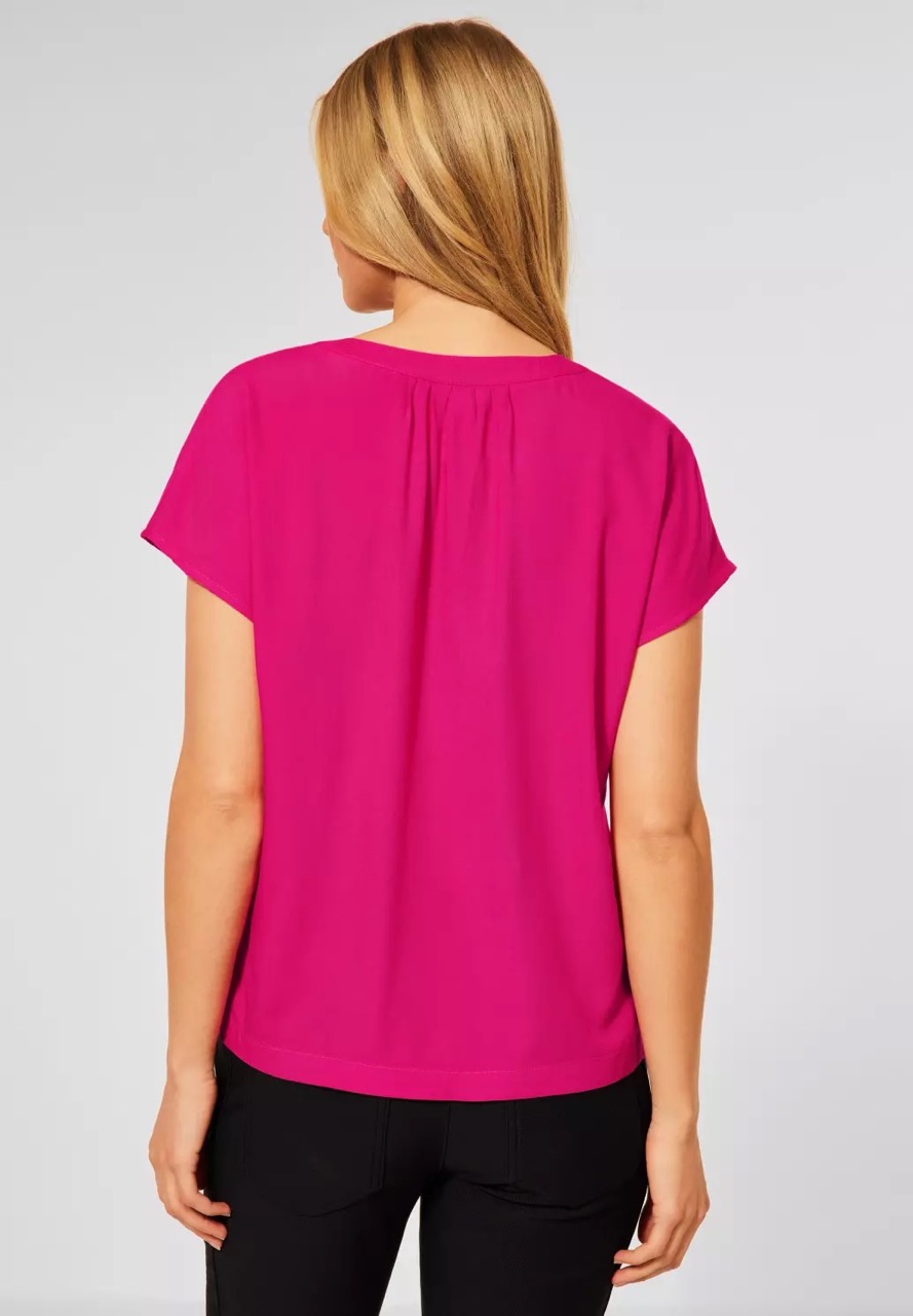 Street One Tops en Shirts A343122 4063052911423 Shirt blouse van Street One met korte aangeknipte mouwen en een ronde hals met een split. Materiaal: Viscose 100% |