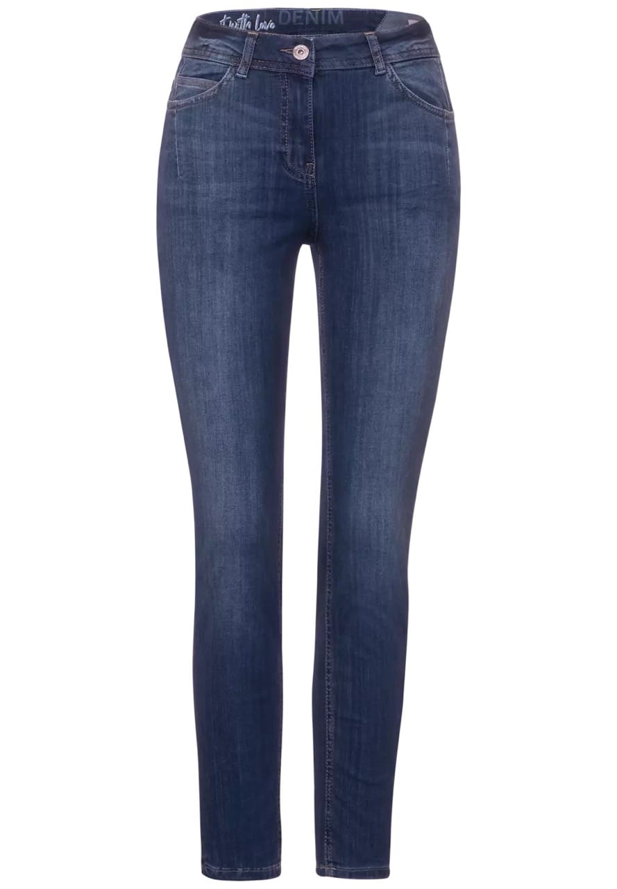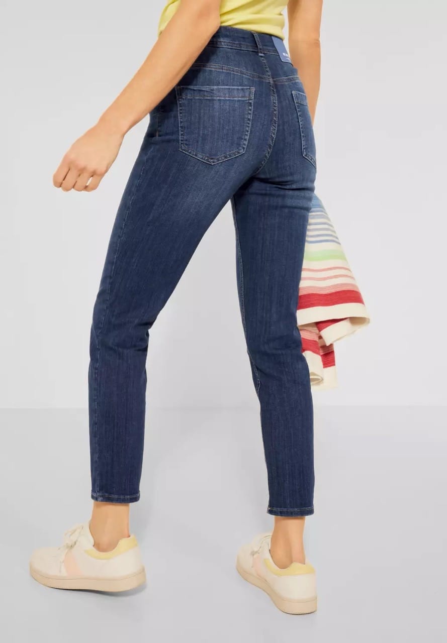 Cecil Jeans B374945 4063041361581 Enkellange 5-pocket jeans van Cecil met een hoge taille en een knoop-en ritssluiting. Materiaal: Katoen 80%| polyester 18%| elastan 2% |