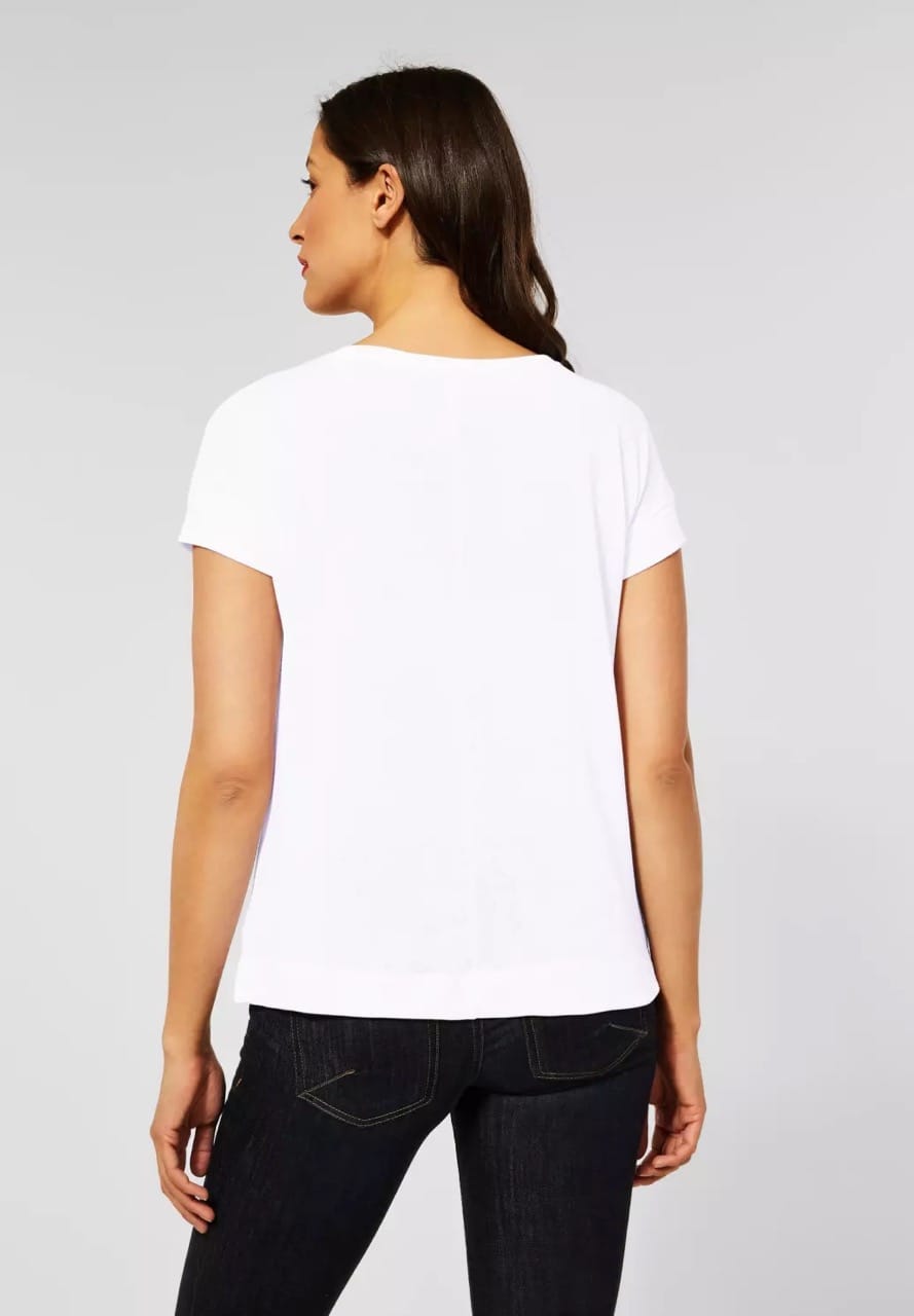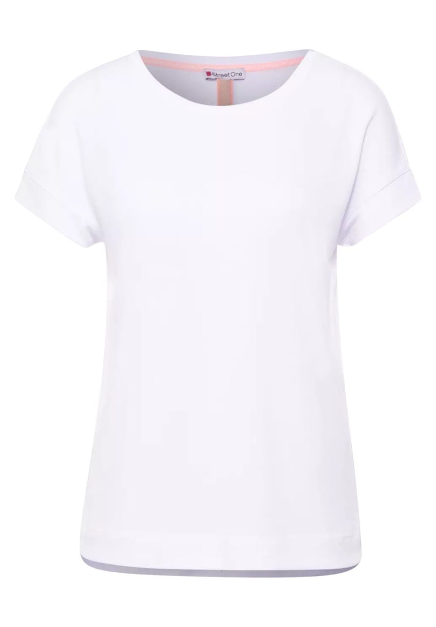 Street One Tops en Shirts A317580 4063052915216 T-shirt van Street One met korte aangeknipte mouwen, ronde hals en brede boorden. Materiaal: Polyester 65%| viscose 35% |