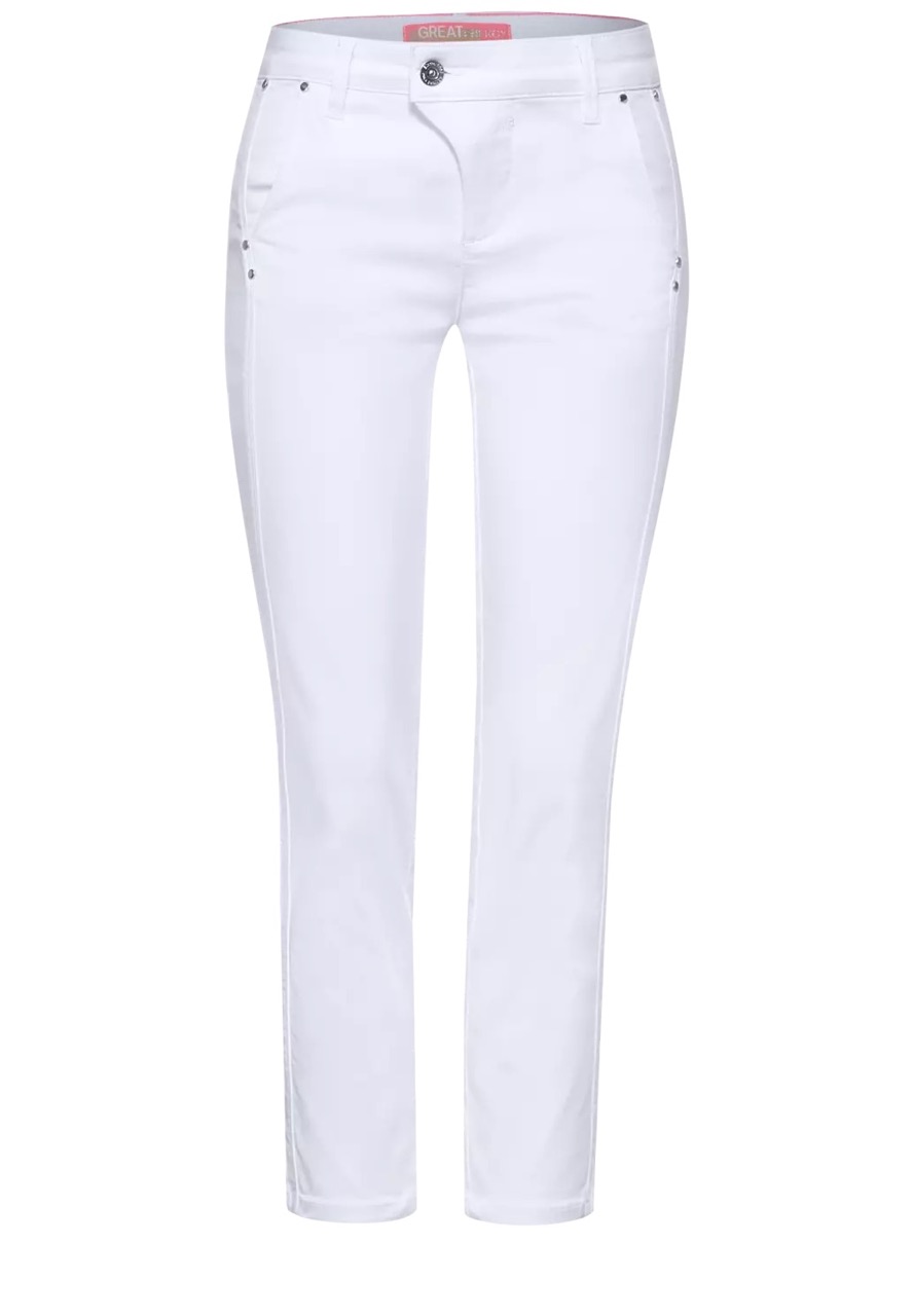 Street One Broeken A374958 4063052896539 Casual-fit 4-pocket broek van Street One met studs, ritssluiting en verplaatste knoop. Materiaal: Katoen 68%| polyester 29%| elastan 2% |