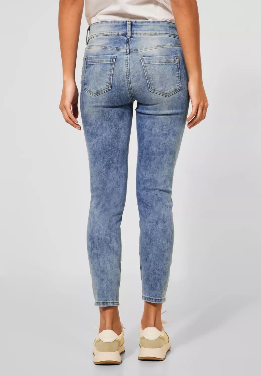 Street One Jeans A374976 4063052902599 4-pocket slim-fit jeans van Street One met een hoge taille, smalle pijpen, lichte wassing en een knoop- en ritssluiting. Materiaal: Katoen 81%| polyester 27%| elastan 2% |