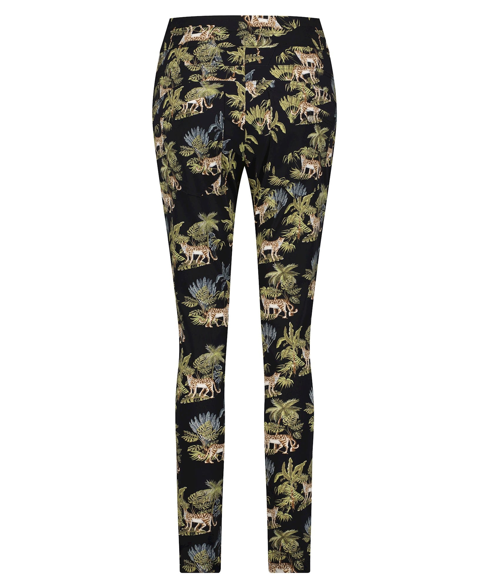 Lady day Broeken M14.488.0401 TIZ 8720696605670 Broek van Lady Day in travel kwaliteit met een all-over dessin, elastische tailleband met trekkoord, slim-fit, ritszakken aan de voorzijde en opgestikte achterzakken. Materiaal: Polyamide 80%| elastan 20% |