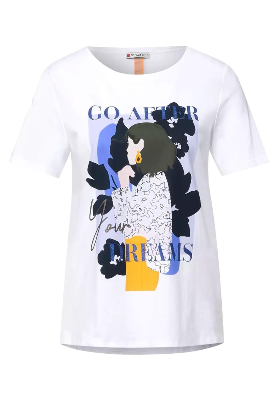 Street One Tops en Shirts A317875 4063053003400 T-shirt van Street One met een print aan de voorzijde, korte mouwen en een ronde hals. Materiaal: Katoen 100% |