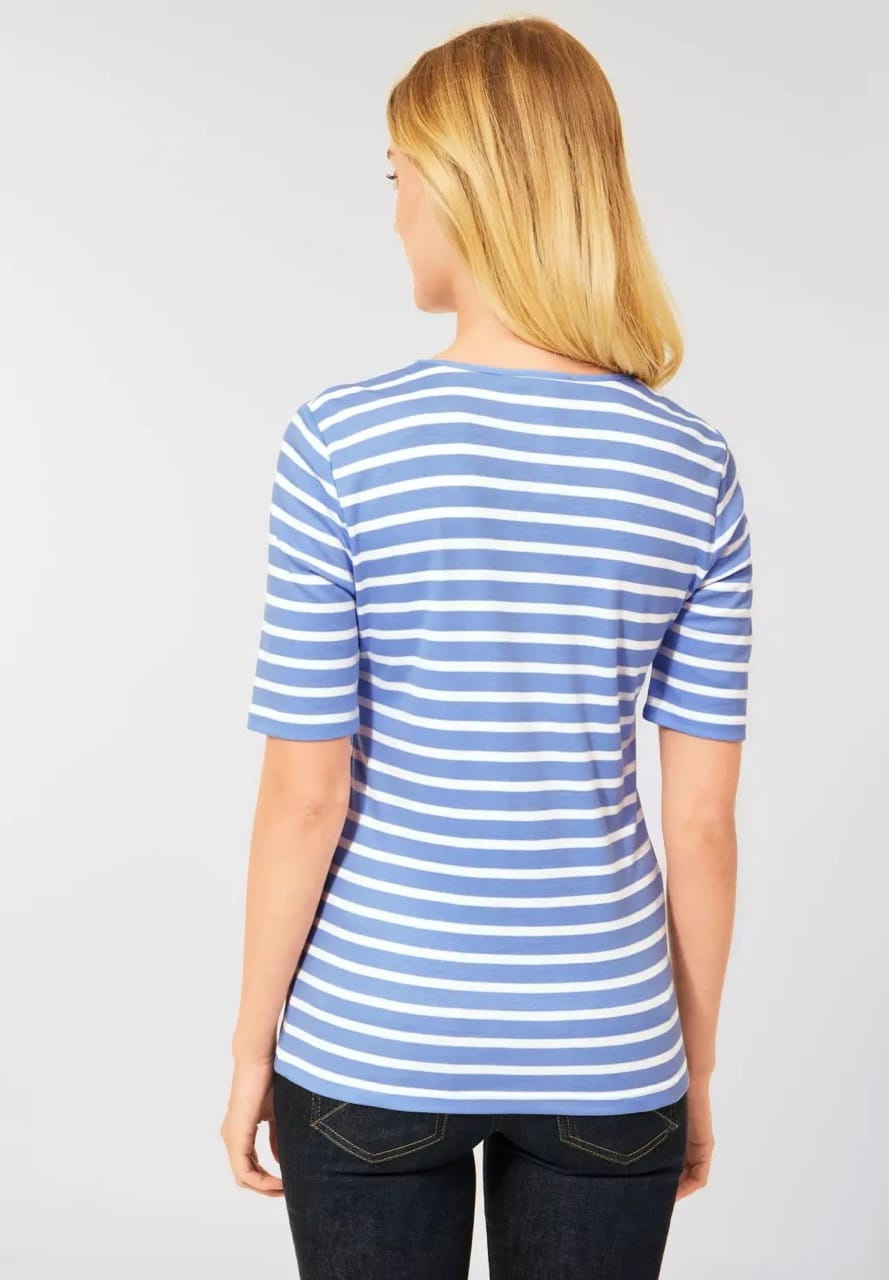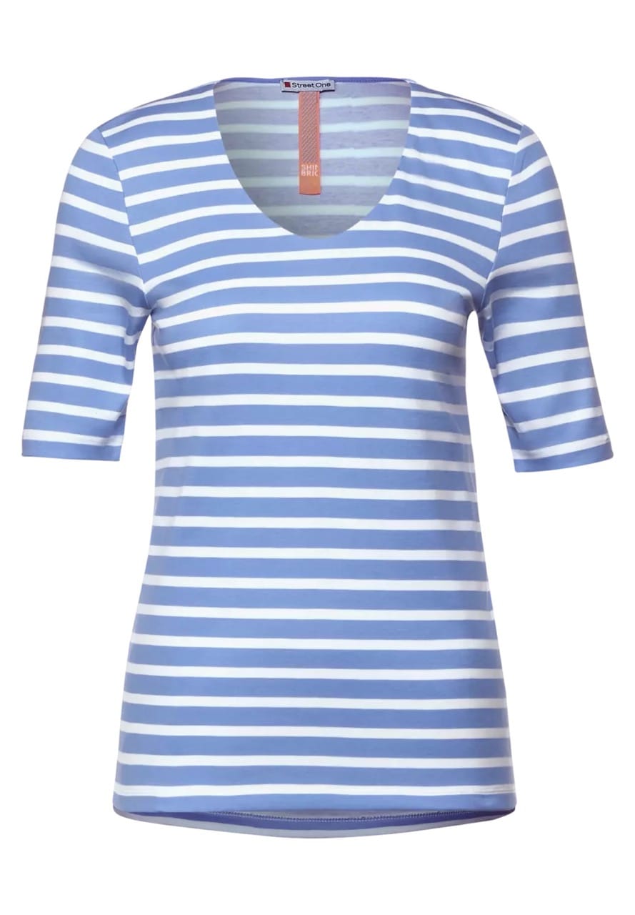 Street One Tops en Shirts A317836 4063052996543 Gestreept T-shirt van Street One met korte mouwen en een afgeronde V-hals. Materiaal: Katoen 50%| modal 50% |
