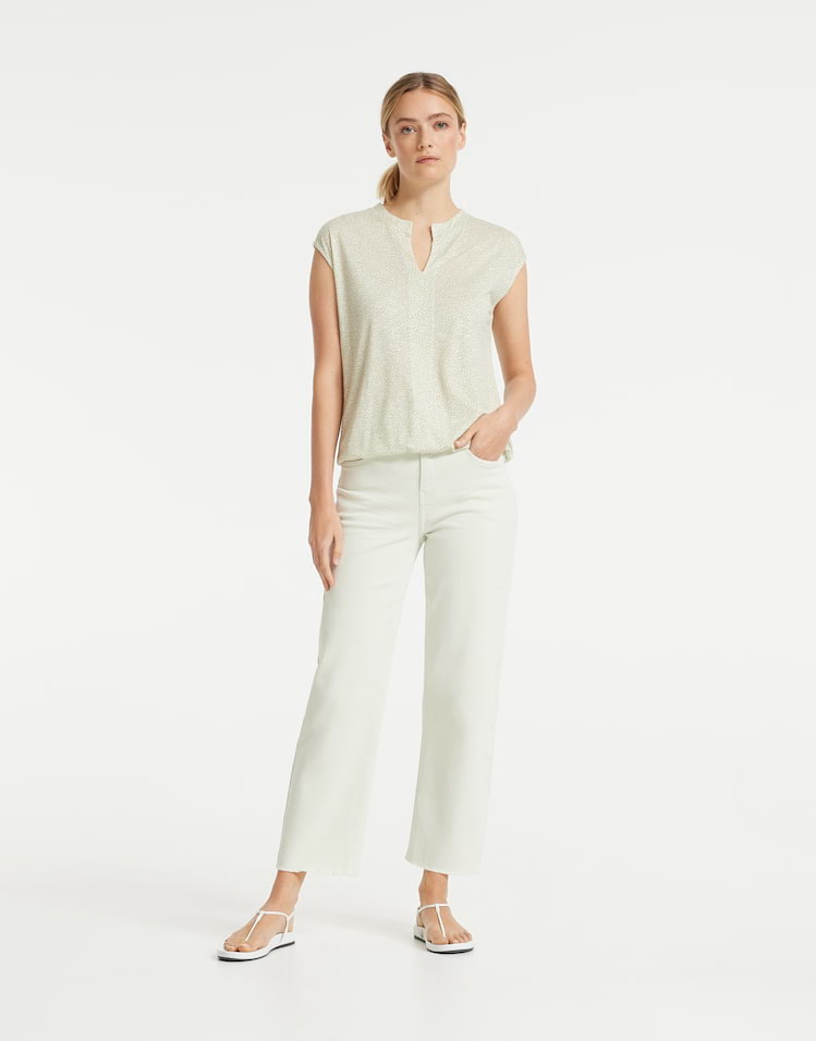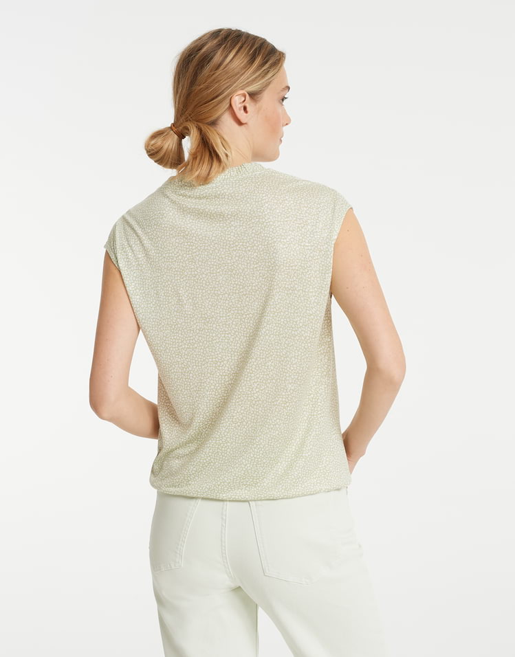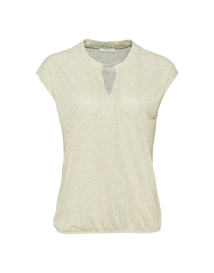 Opus Tops en Shirts 10039210411100 4251892246656 Mouwloos shirt van Opus in een all-over dessin, V-hals en een elastische onderzijde. Materiaal: Viscose 100% |
