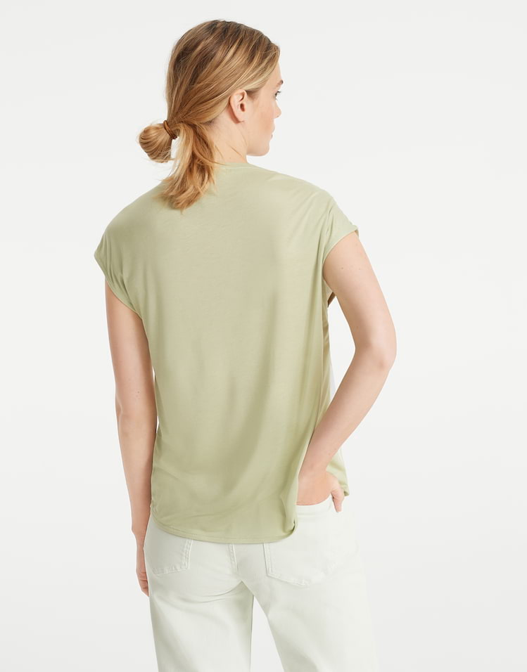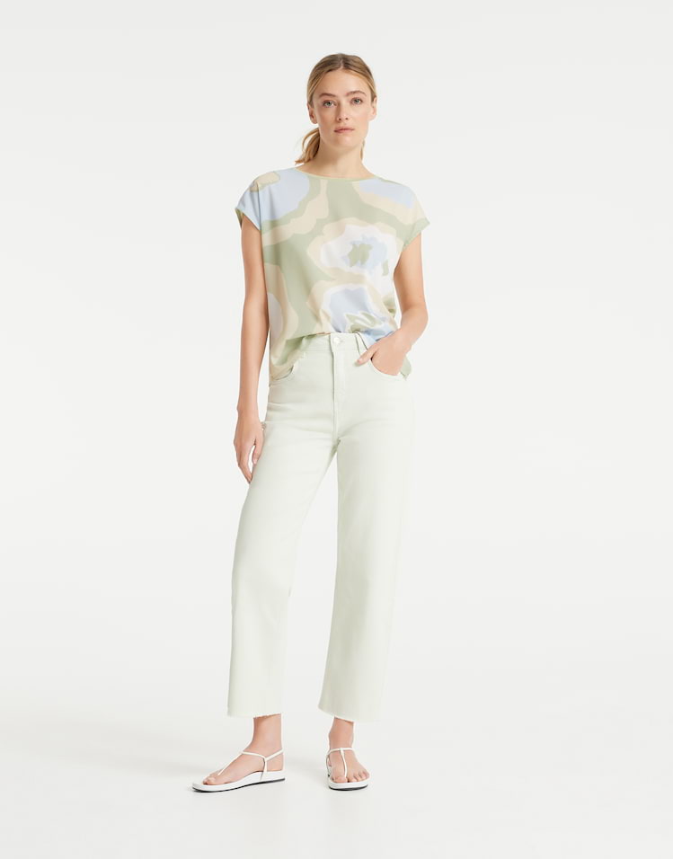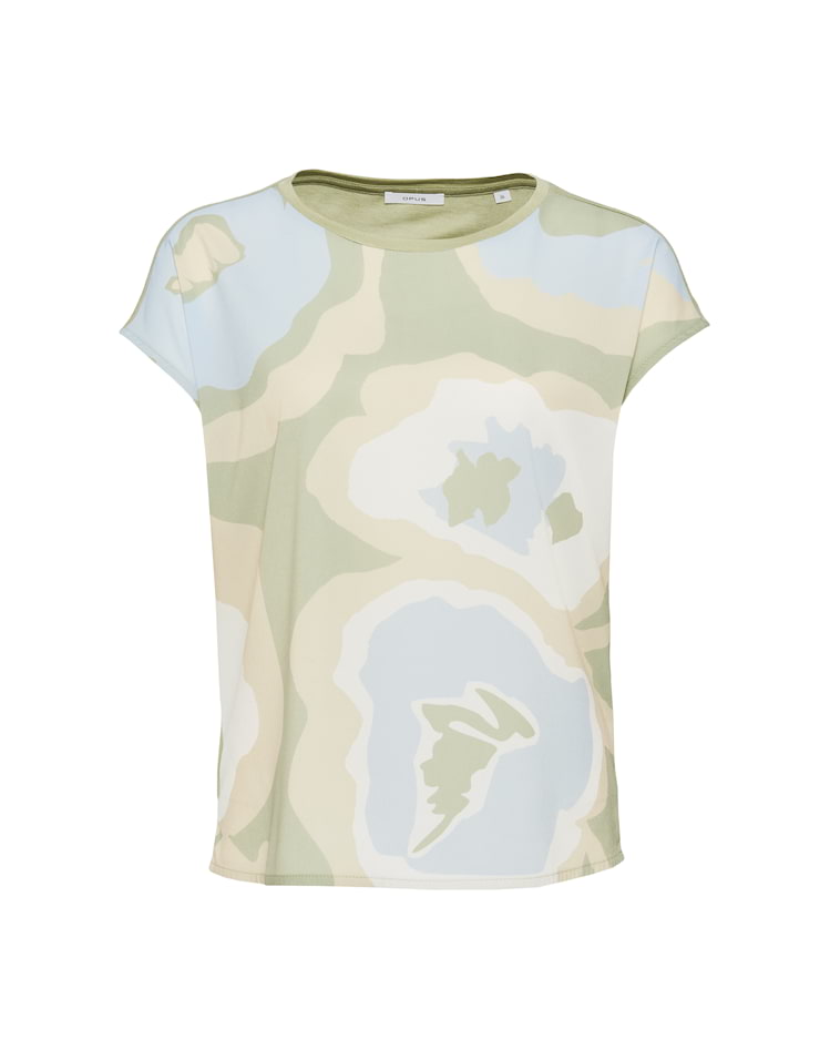 Opus Tops en Shirts 10042210429122 4251892241163 Shirt van Opus in een bloemen dessin aan de voorzijde, effen achterzijde met korte aangeknipte mouwen en een ronde hals. Materiaal: Viscose 100% |