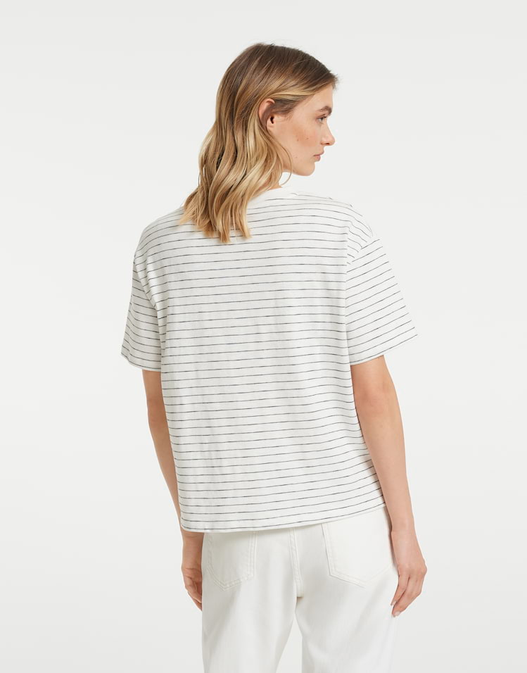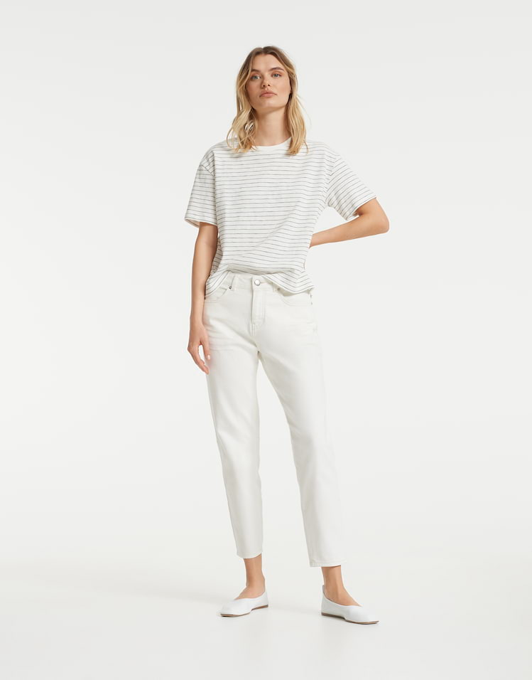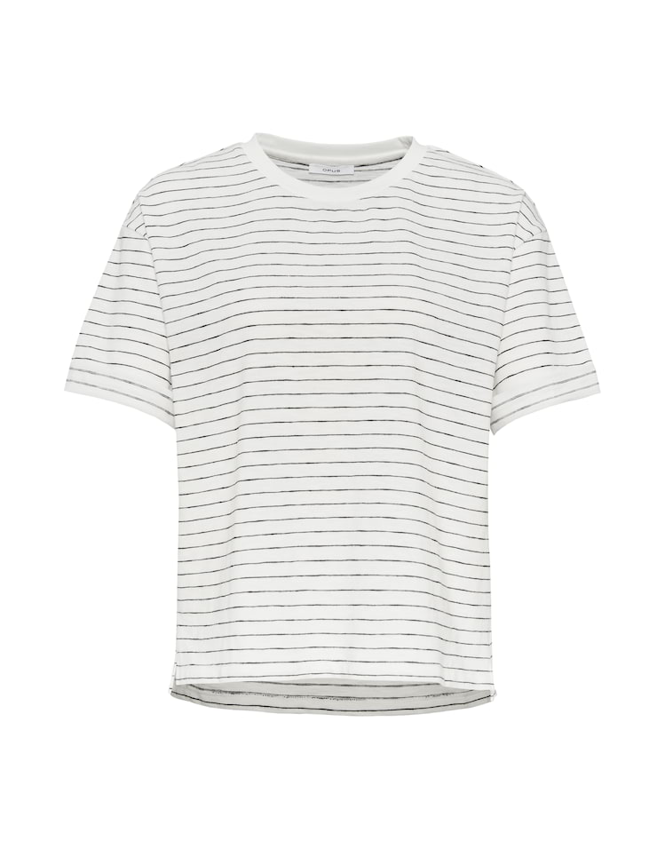 Opus Tops en Shirts 10038210405122 4251892240005 Gestreept T-shirt van Opus met korte mouwen, ronde hals en splitten in de zijnaden. Materiaal: Katoen 81%| polyamide 19% |