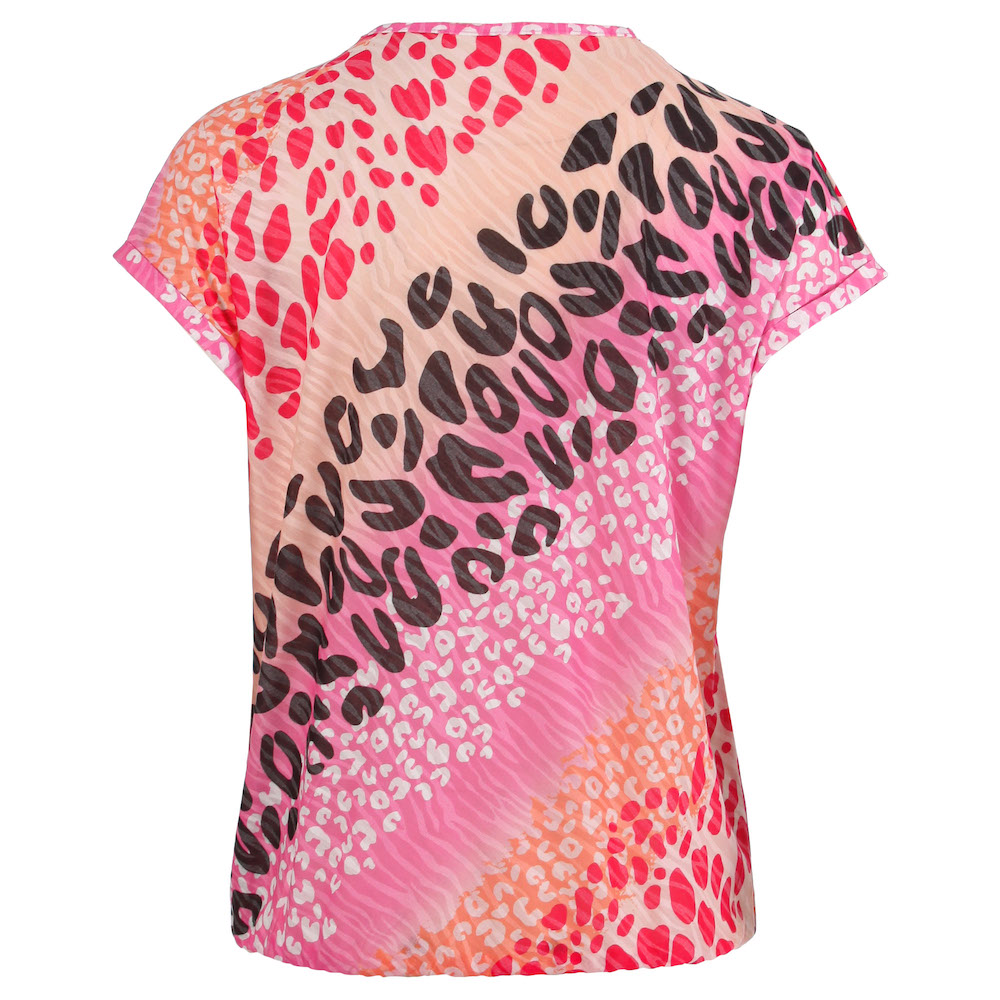 Enjoy Tops en Shirts 183234 2400000534891 Blouson van Enjoy in een diagonaal dieren dessin met korte aangeknipte mouwen voorzien van omslag, ronde hals en een elastische zoom. Materiaal: Viscose 100% 2) Polyester 65%| viscose 35% |