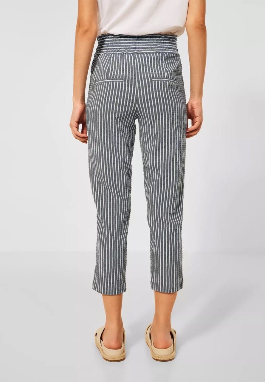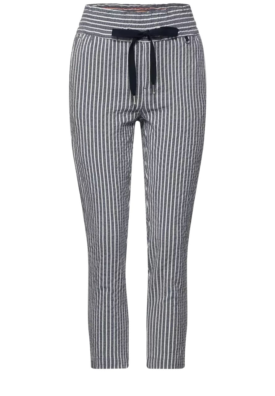 Street One Broeken A375111 4063053008719 Gestreepte 7/8 seersucker broek van Street One met twee steekzakken en een elastische tailleband voorzien van trekkoord. Materiaal: Viscose 58%| polyester 38%| elastan 4% |