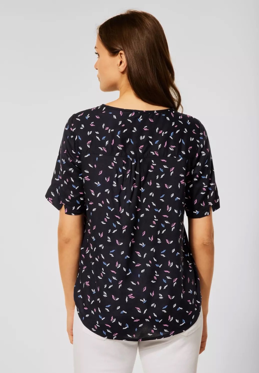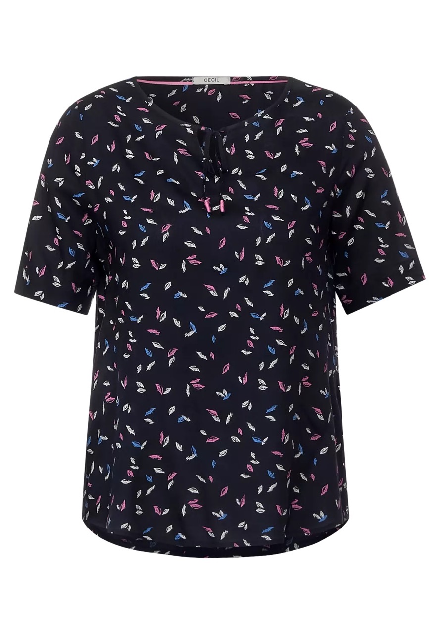 Cecil Blouses B343230 4063041509860 Blouse van Cecil in een all-over dessin met korte mouwen en een ronde hals voorzien van split en tuniekbandjes. Materiaal: Viscose 100% |