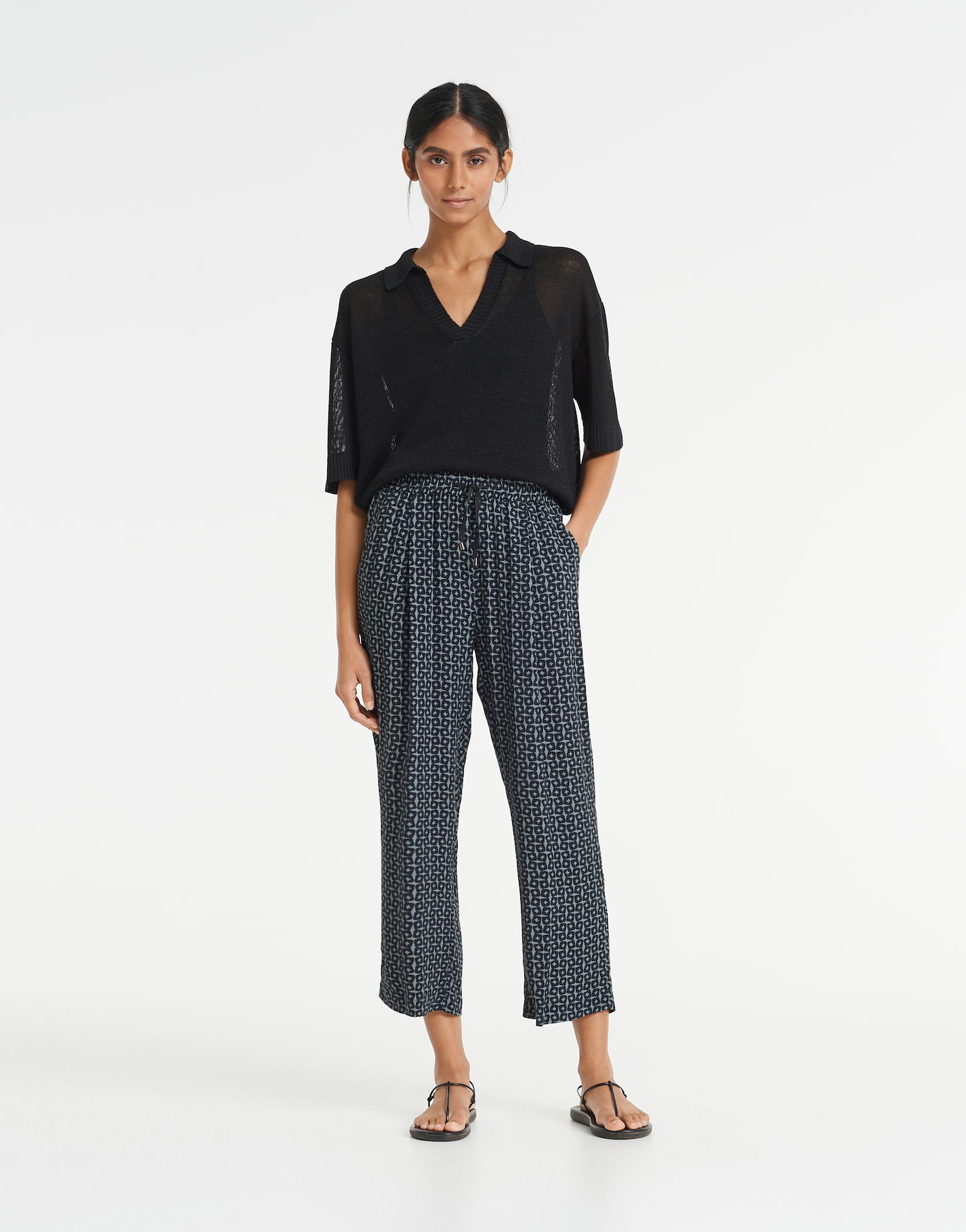 Opus Broeken 2406710498100 4251892267163 Broek van Opus in een mozaïek dessin met verkorte wijde pijpen en een elastische tailleband. Materiaal: Viscose 100% |