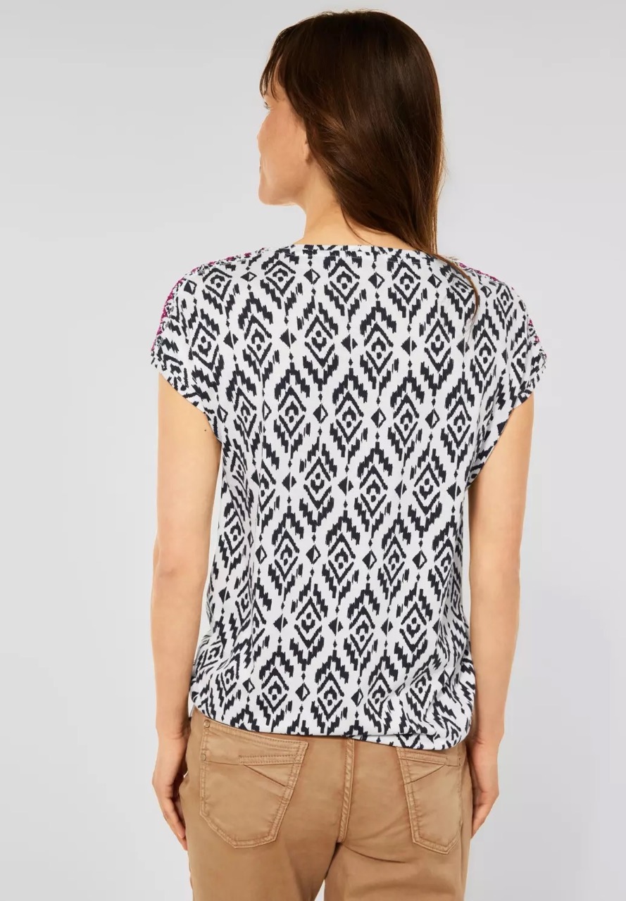 Cecil Tops en Shirts B318045 4063041575803 T-shirt van Cecil in een etnisch dessin met korte aangeknipte mouwen, V-hals, elastische zoom en gesmokte details op de schouders. Materiaal: Modal 50%| katoen 50% |