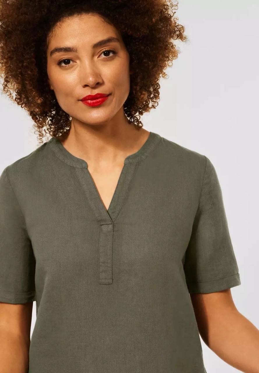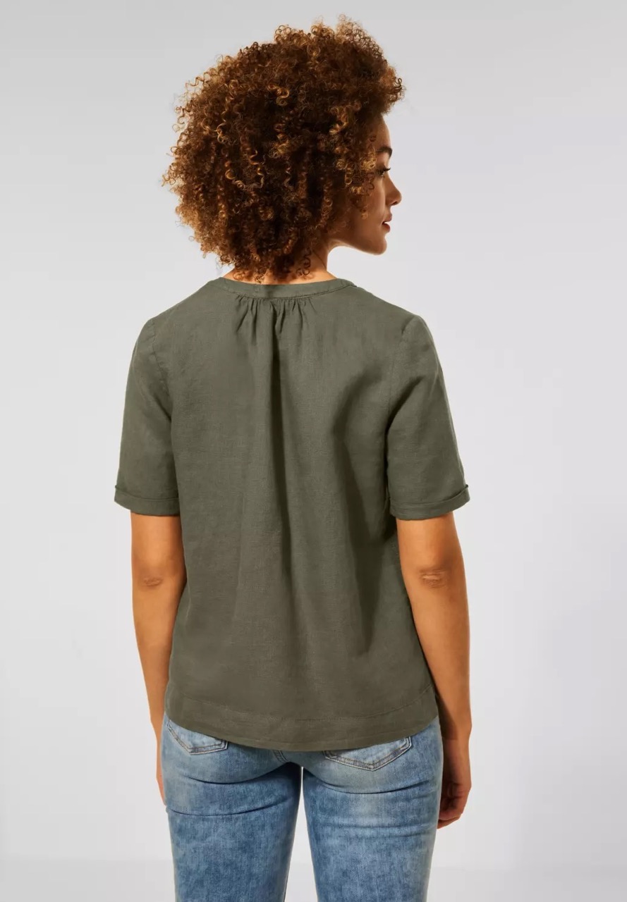 Street One Blouses A343096 4063052817435 Linnen blouse van Street One met korte mouwen voorzien van omslag en een ronde hals voorzien van split. Materiaal: Linnen 60%| katoen 40% |