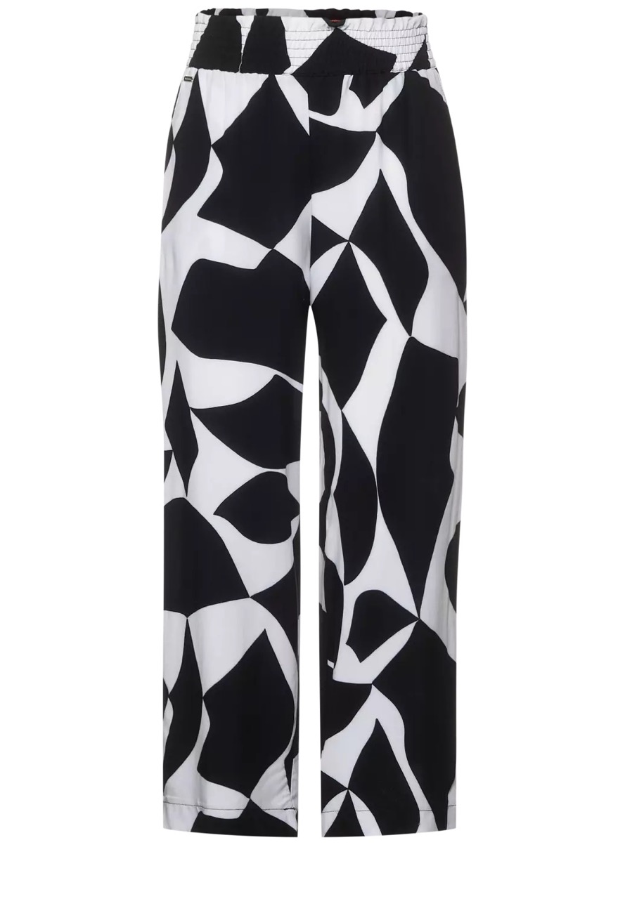 Street One Broeken A375263 4063053100024 7/8 broek van Street One in een all-over dessin met rechte pijpen, steekzakken, paspelzakken aan de achterzijde en een brede elastische tailleband. Materiaal: Eco viscose 100% |