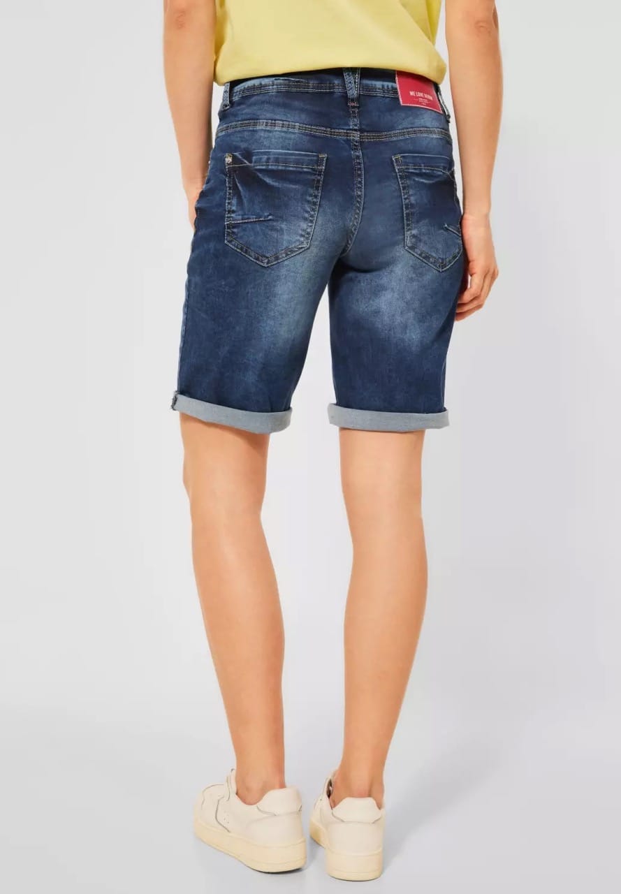 Cecil Shorts B375228 4063041574493 5-pocket jeansshort van Cecil met een dubbele knoop-en ritssluiting en een omslag in de pijpen. Materiaal: Katoen 81%| polyester 17%| elastan 2% |