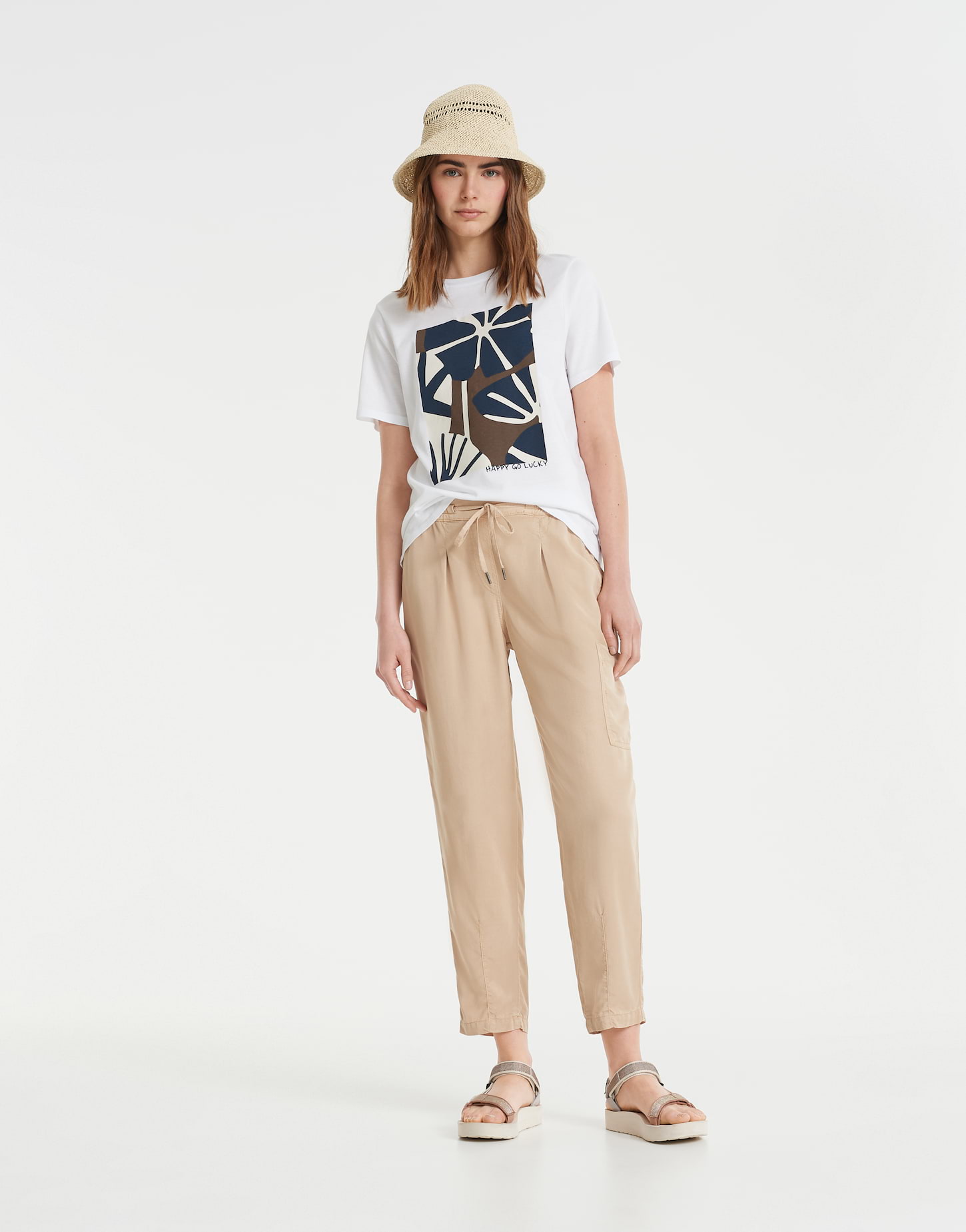 Opus Tops en Shirts 10061510539123 4251892256792 T-shirt van Opus met korte mouwen, ronde hals en een print aan de voorzijde. Materiaal: Modal 50%| katoen 50% |