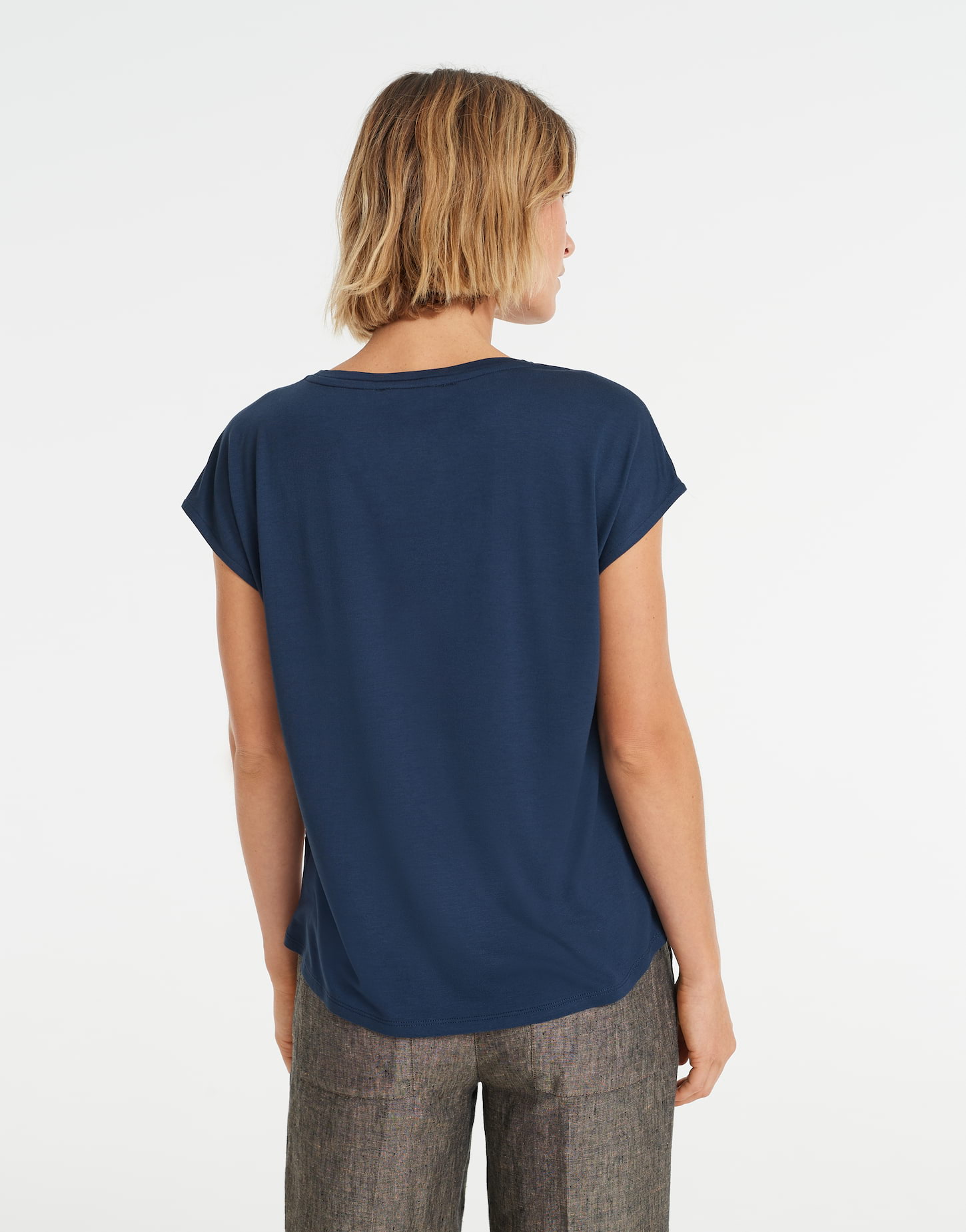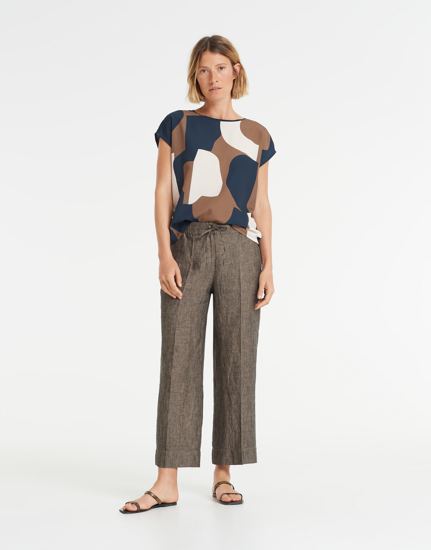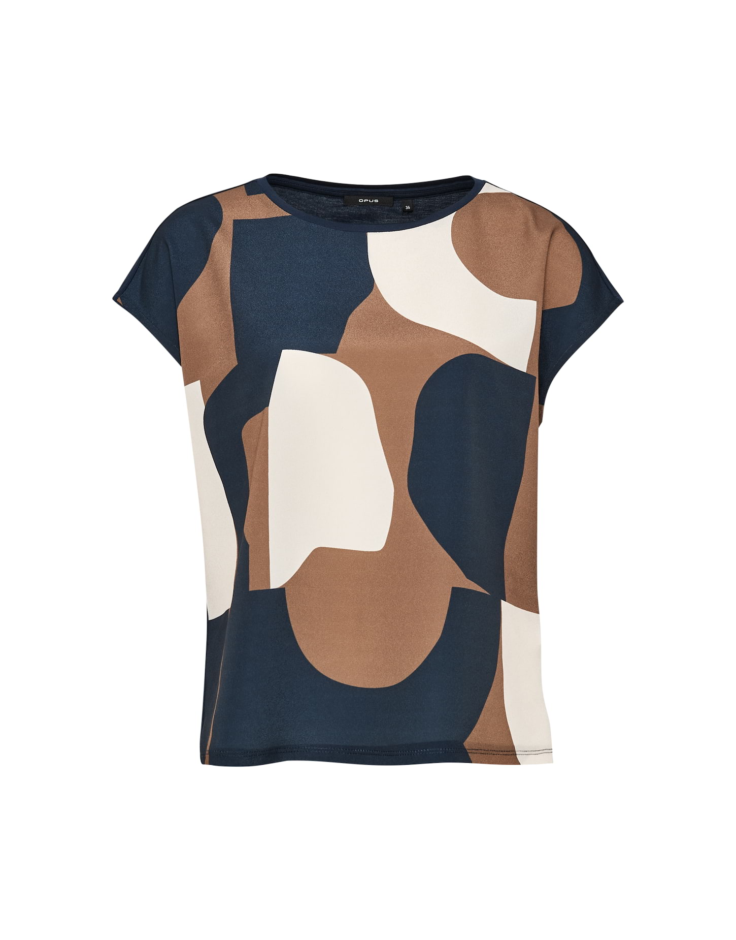 Opus Tops en Shirts 10061410540123 4251892257010 Shirt van opus met een print aan de voorzijde, effen achterzijde, korte aangeknipte mouwen en een ronde hals. Materiaal: Viscose 100% |