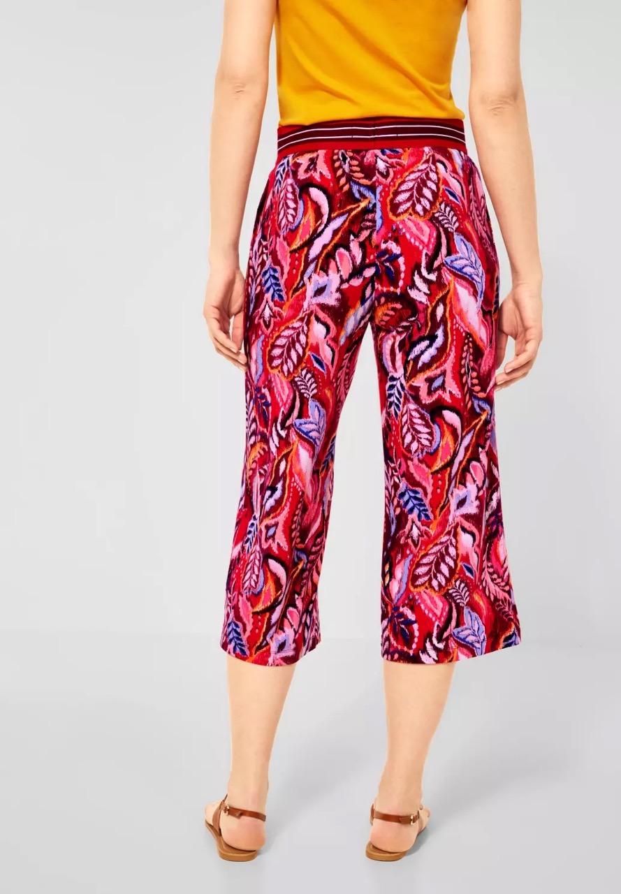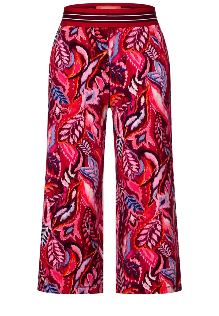 Street One Broeken A375265 4063053100567 Capri broek van Street One in een all-over dessin met rechte pijpen, steekzakken en een elastische tailleband. Materiaal: Viscose 95%| elastan 5% |