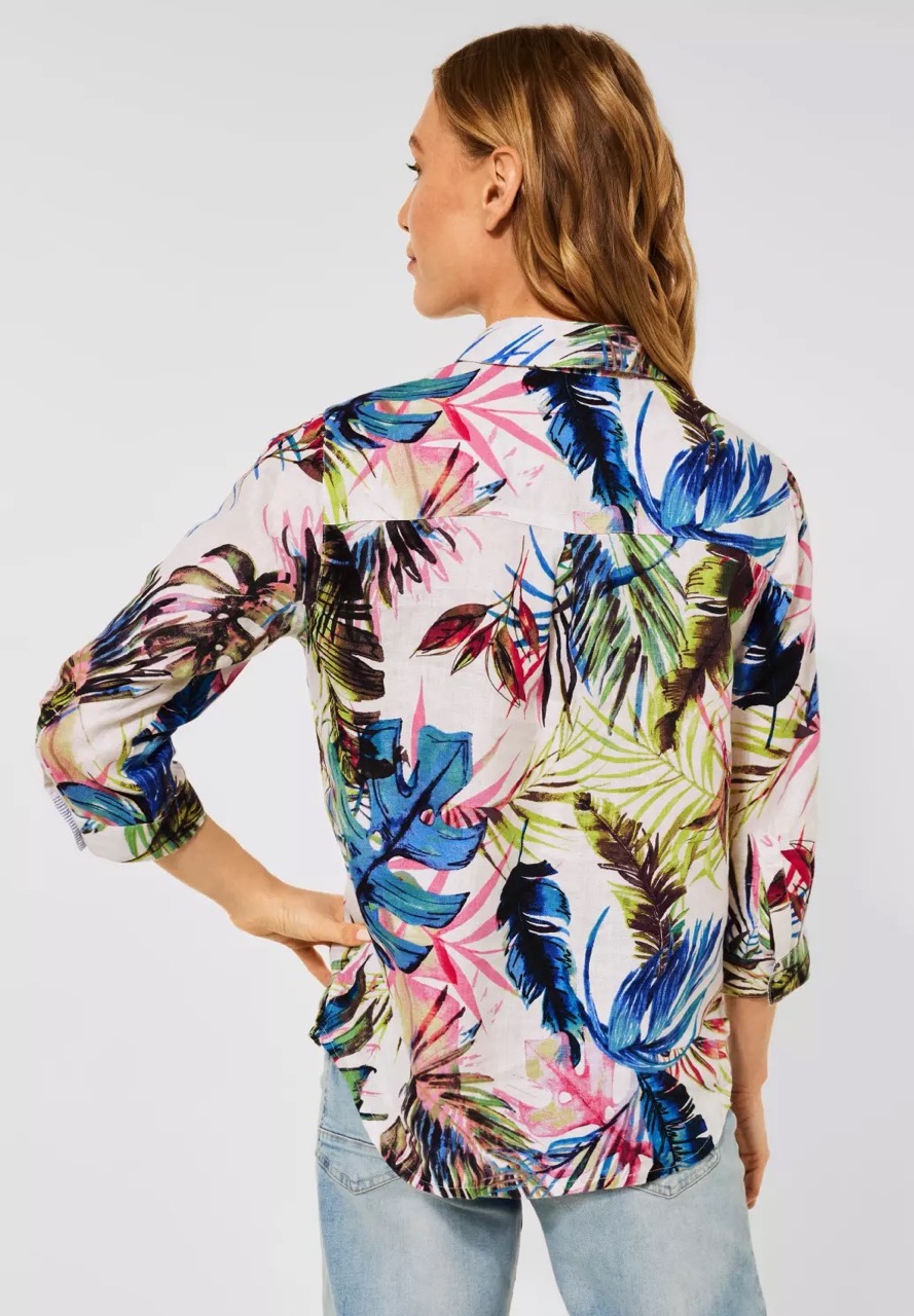Cecil Blouses B343055 4063041281261 Linnen blouse van Cecil in een tropisch dessin met driekwart mouwen, kraag, knoopsluiting en een afgeronde onderzijde. Materiaal: Linnen 100% |