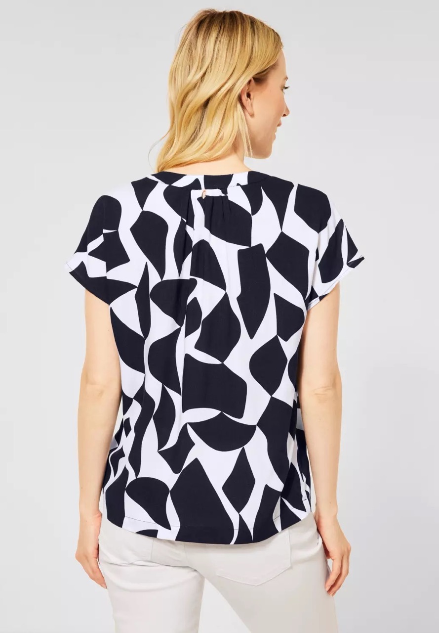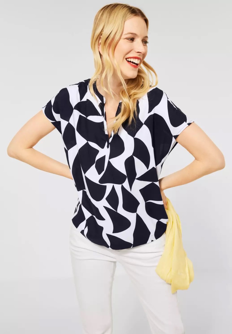 Street One Blouses A343257 4063053071829 Blouse van Street One in een grafisch dessin met korte aangeknipte mouwen en een V-hals. Materiaal: Viscose 100% |