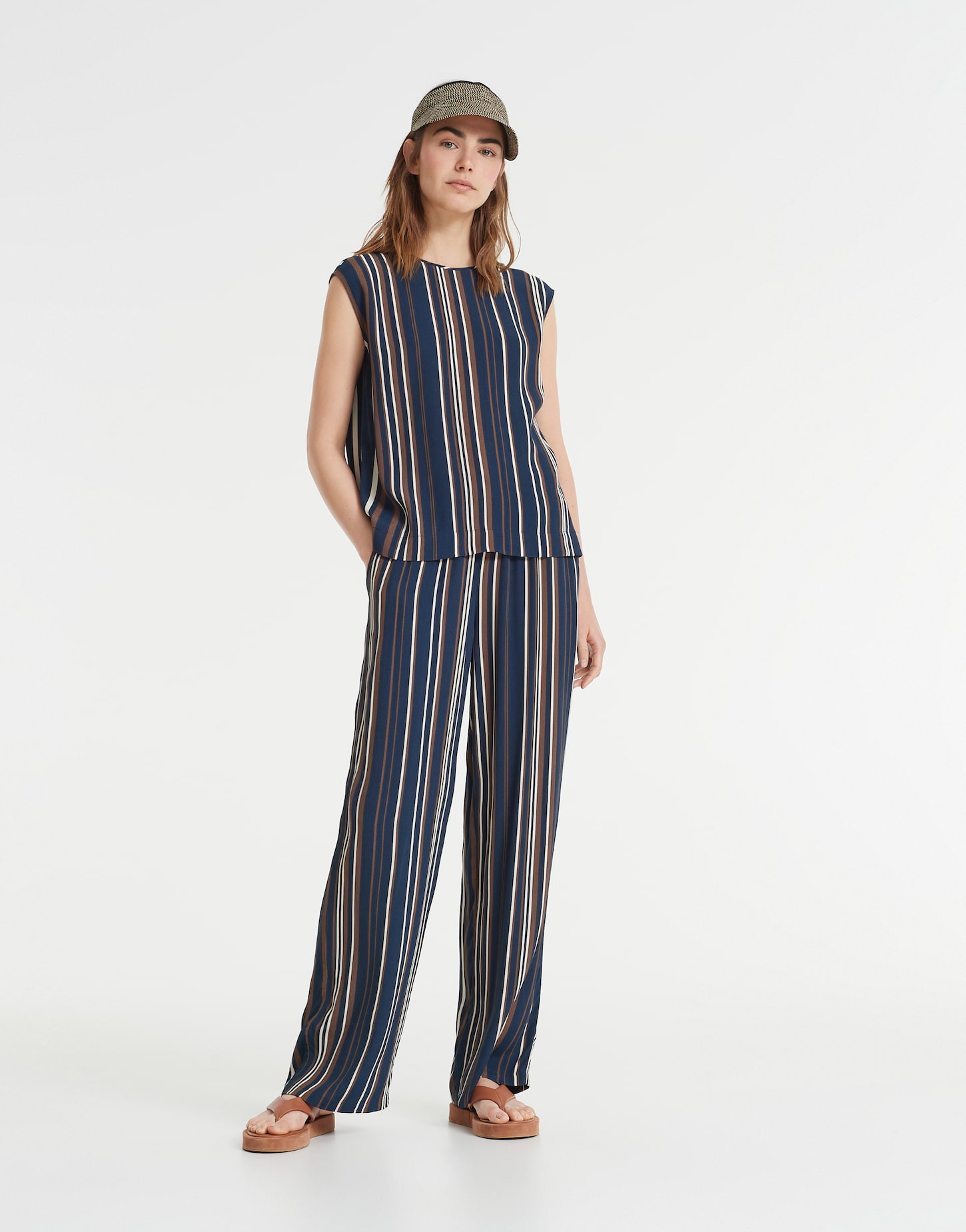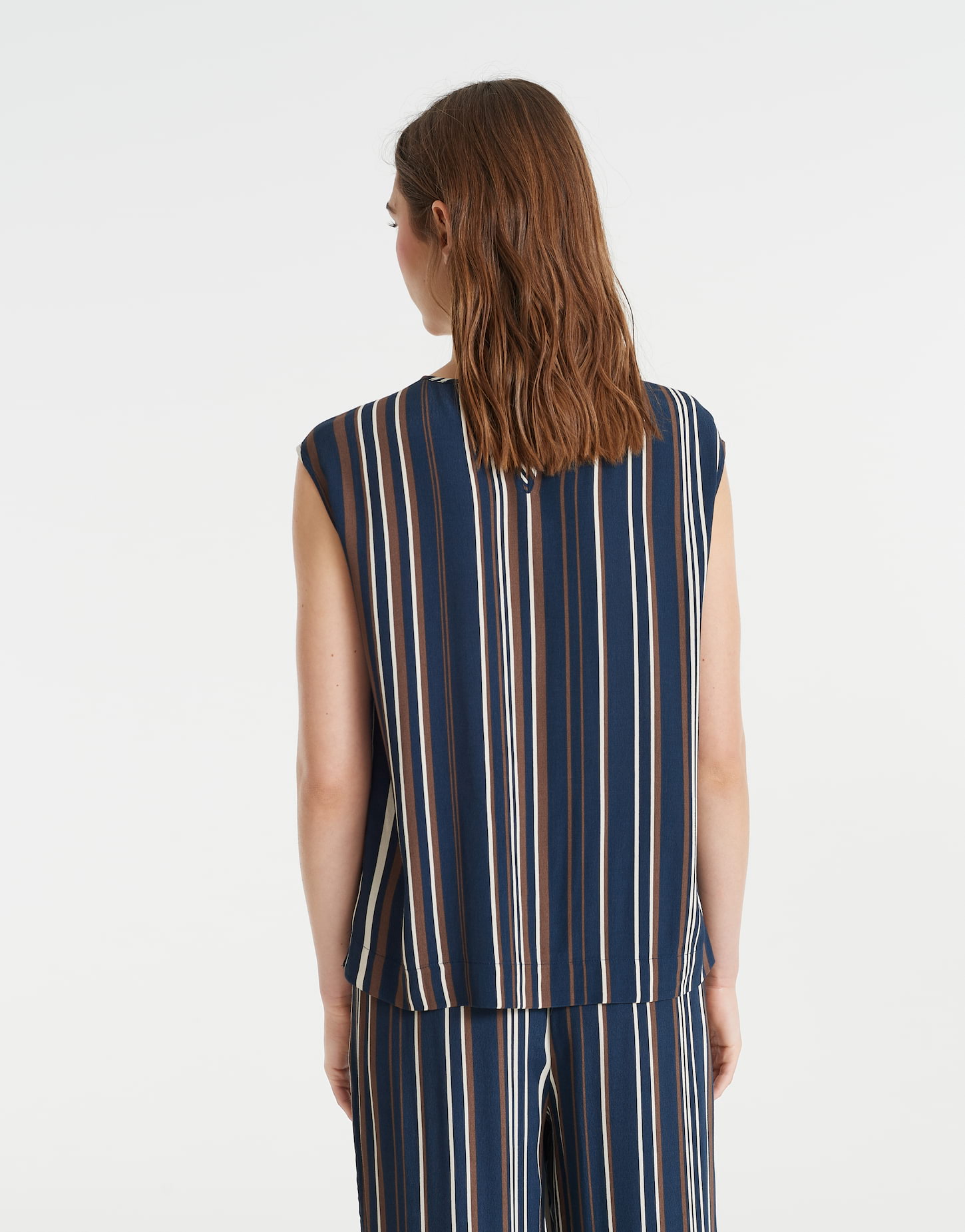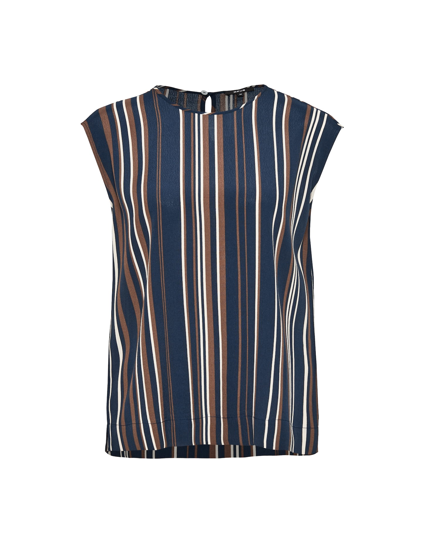Opus Blouses 10054710508124 4251892259946 Mouwloze gestreepte blouse van Opus met een ronde hals en een keyhole met knoopsluiting aan de achterzijde. Materiaal: Viscose 100% |