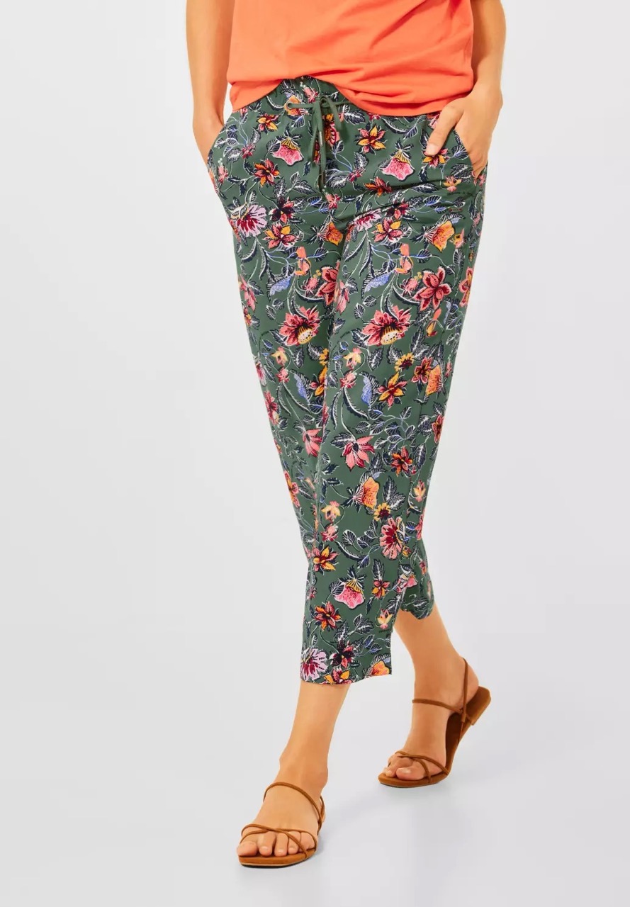 Cecil Broeken B375403 4063041652559 Casual-fit broek van Cecil in een bloemen dessin met twee steekzakken en een elastische tailleband voorzien van trekkoord. Materiaal: Viscose 100% |