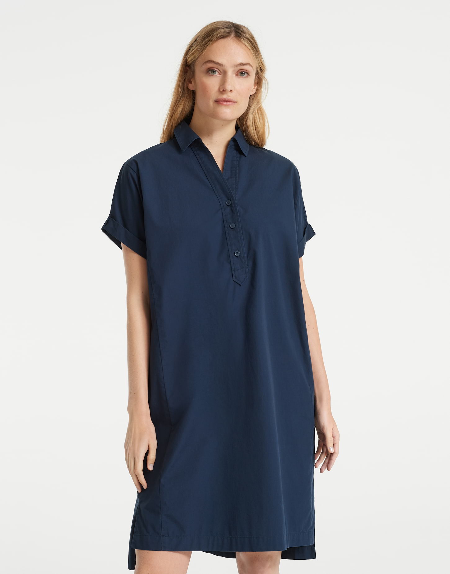 Opus Jurken en Rokken 245905760134 4251892237166 Jurk van Opus met korte mouwen voorzien van vaste omslag, kraag, twee steekzakken, zijsplitten en een korte knoopsluiting. Materiaal: Katoen 100% |