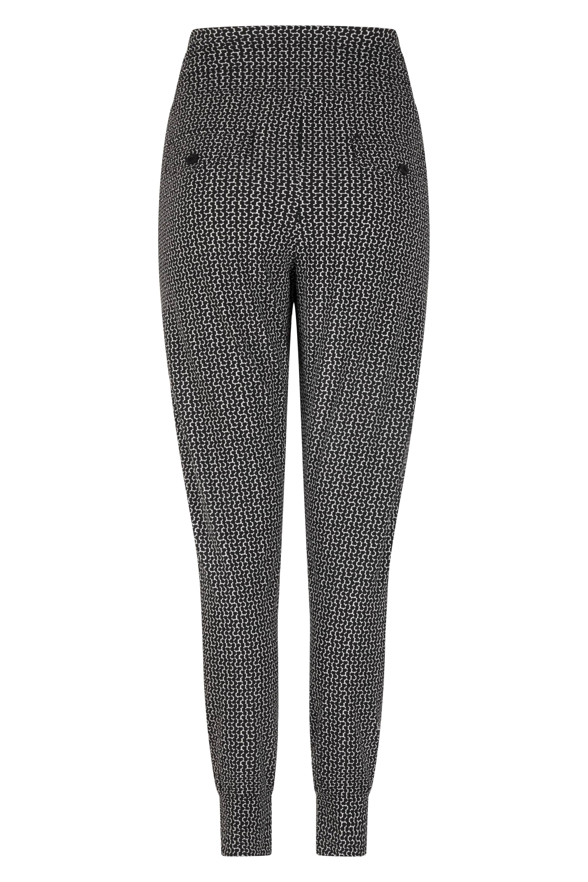 Zoso Broeken 215 DO 8720036340568 Broek van Zoso in een all-overdessin met ritszakken, deelnaden en een elastische tailleband voorzien van trekkoord. Materiaal: polyamide 73%| elastan 27% |
