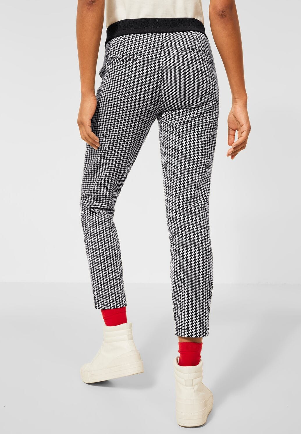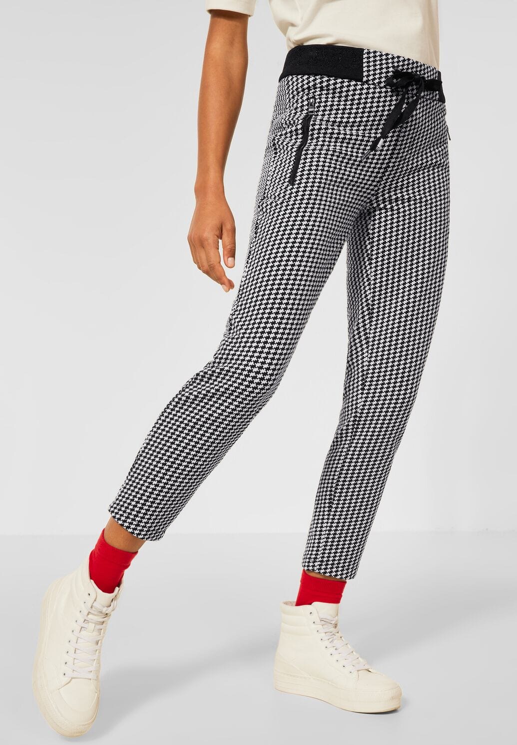 Street One Broeken A374631 4063052610548 Broek van Street One in een pied-de-poule dessin met een 3D structuur, elastische tailleband voorzien van trekkoord en twee ritszakken. Materiaal: Polyester 55%| viscose 40%| elastan 5% |