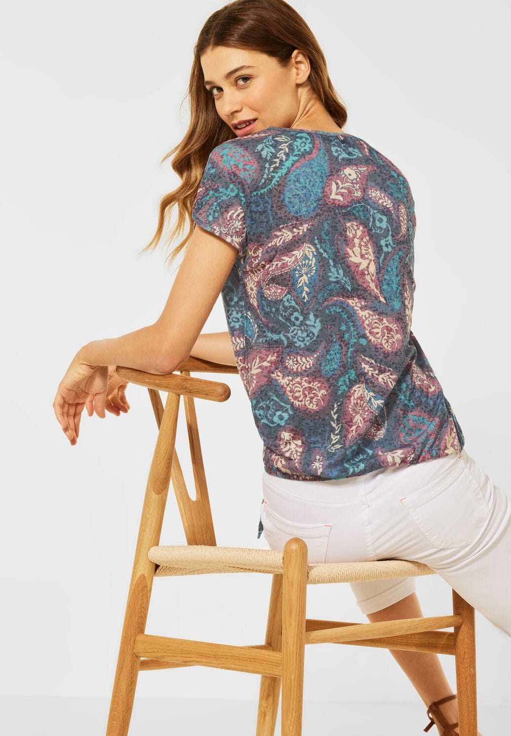 Cecil Tops en Shirts B316736 32612 4063039903540 T-shirt van Cecil in een paisley dessin met korte aangeknipte mouwen, V- hals en een knoopdetail aan de zoom. Materiaal: polyester 65%| katoen 35% |