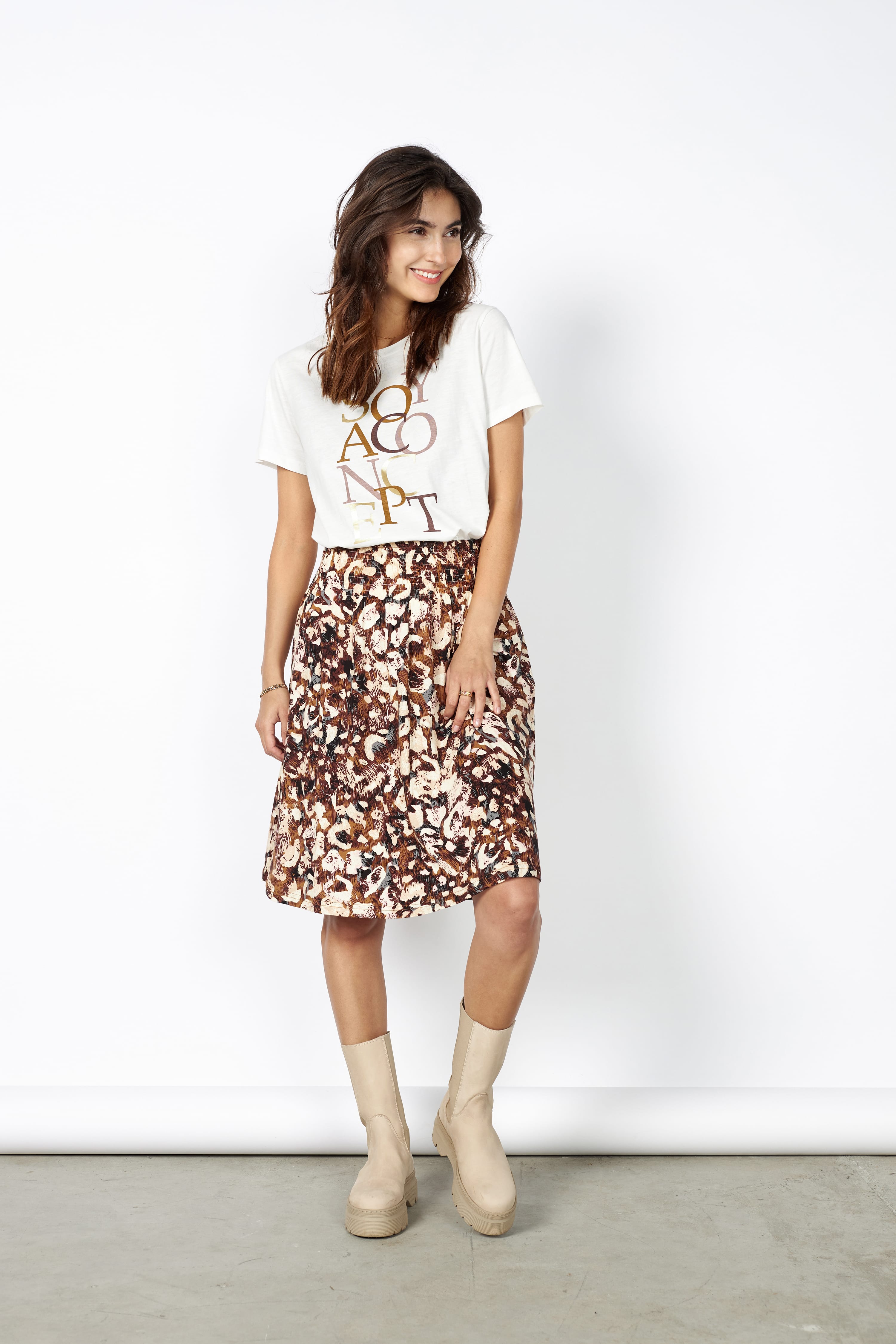 Soya Tops en Shirts SC BABETTE FP23 1100 5713076543702 T-shirt van Soyaconcept met korte mouwen, ronde hals en een folie tekstprint aan de voorzijde. Materiaal: katoen 100% |