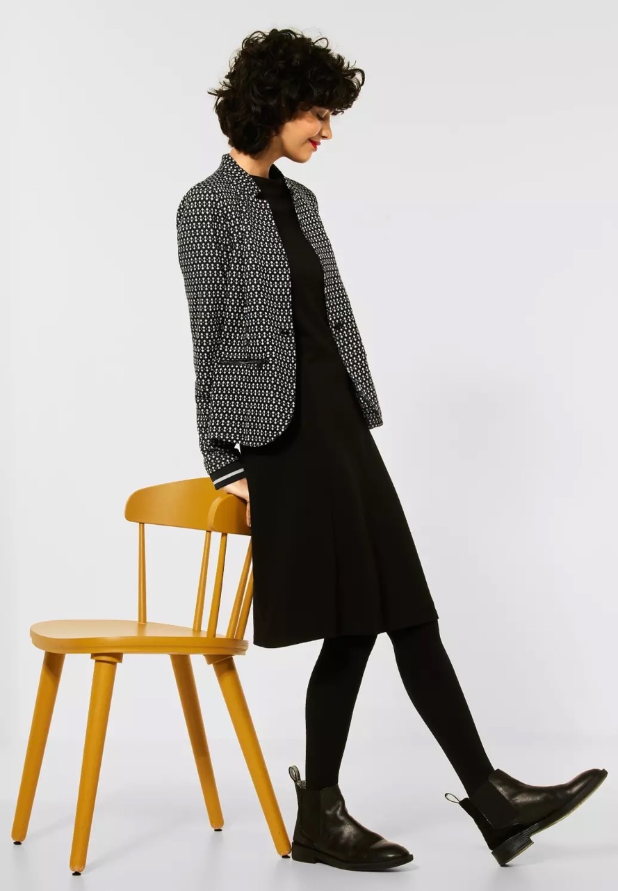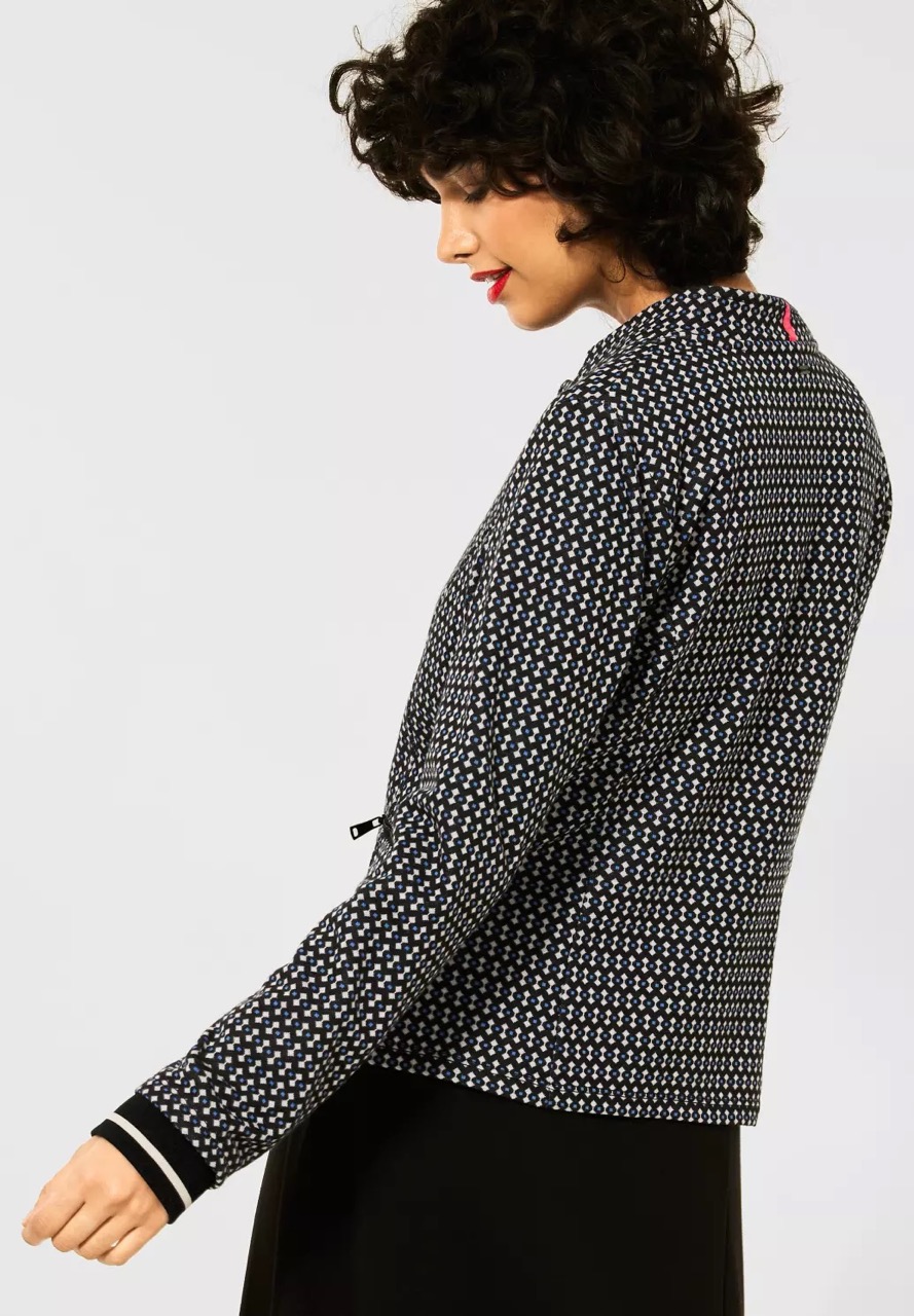 Street One Blazers A211522 4063052678838 Jacquard blazer van Street One in een all-over dessin met lange mouwen, knoopsluiting, twee ritszakken en een opstaande kraag. Materiaal: Polyester 68%| viscose 27%| elastan 5% |