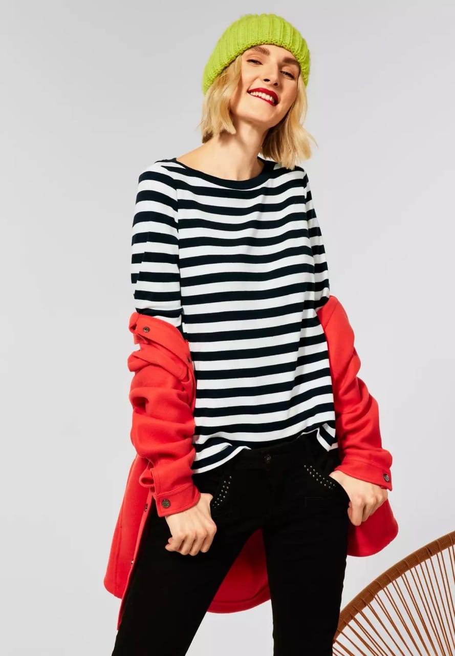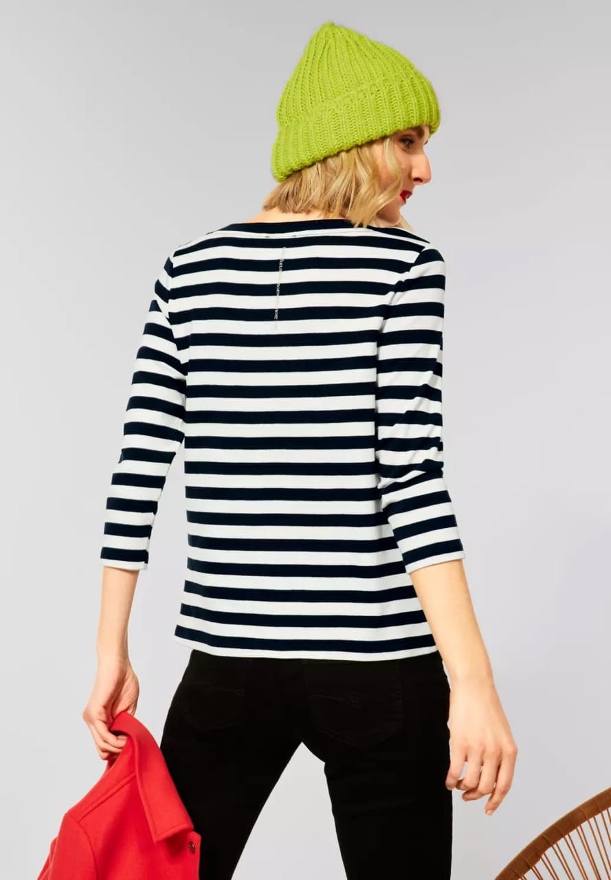 Street One Tops en Shirts A317333 23325 4063052717520 Gestreept shirt van Street One met driekwart mouwen en een ronde hals. Materiaal: Katoen 100% |