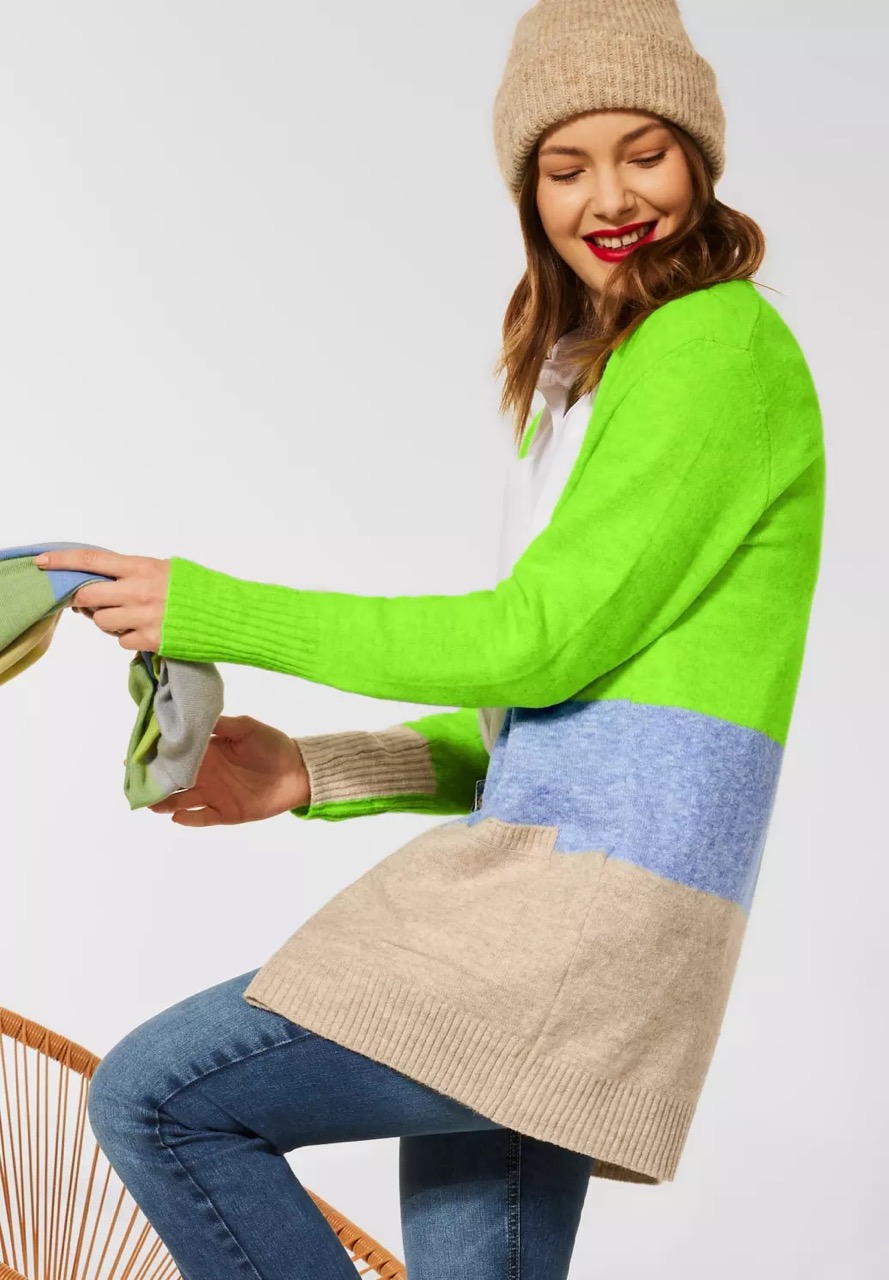 Street One Truien en Vesten A253360 4063052734916 Gebreid vest van Street One in een leuke colorblock met lange mouwen. Materiaal: Polyacryl 45%| katoen 25%| polyamide 20%| polyester 10% |